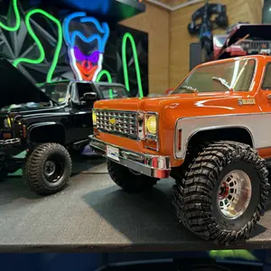 ·This 1/10 K5 Blazer RC Crawler faithfully restored the 1970s American hard road style models, the front highly replicated grille, front and rear bumpers, body chrome lines using the silver hot stamping process, the side of the car using the etching process, so that players in the process of remote control driving to feel the full charm of the classic Chevrolet cars.