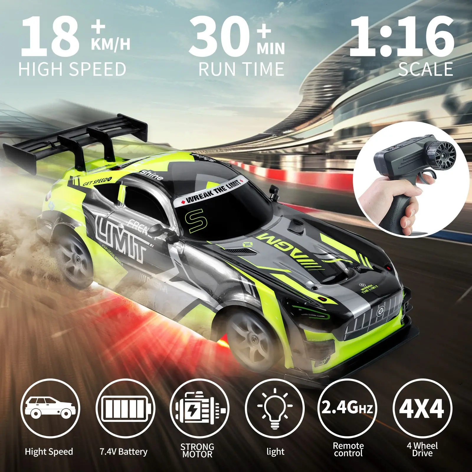 ·4WD All-Wheel Drive: Ensures superior control and stability, allowing you to tackle various terrains and enjoy precise drifting action.