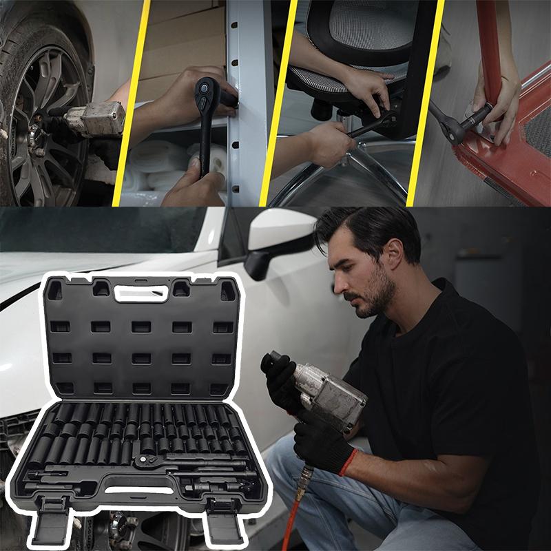 High Torque: Distinguished by its hexagonal drive design, which sets it apart from traditional designs lacking rounded corners, this socket tool set significantly reduces pressure exerted on fasteners during impact. As a result, it minimizes wear and effectively prevents bolt rounding and stripping.