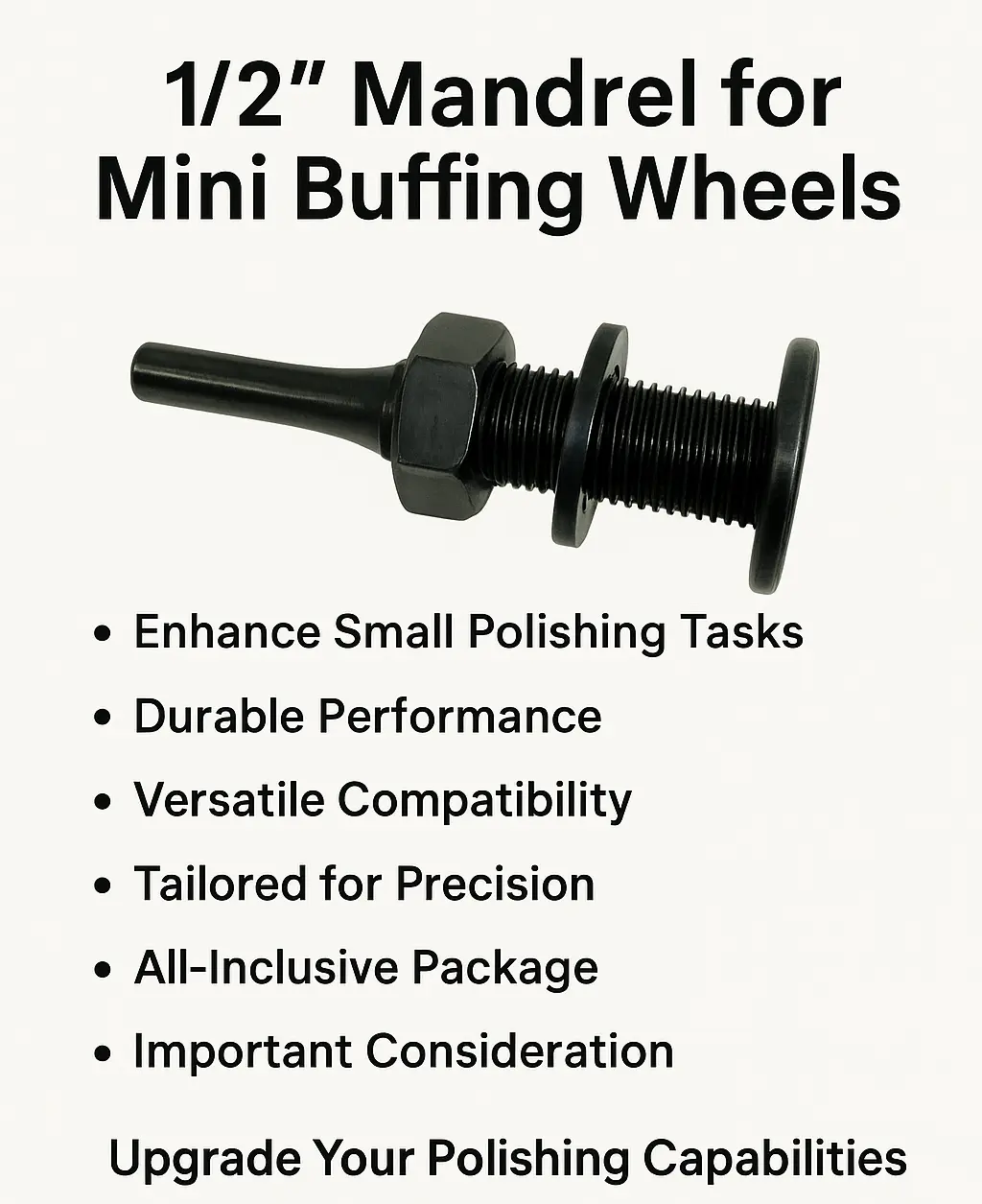 Elevate your polishing capabilities with our 1/2" Mandrel Attachments. Precision, durability, and user-friendliness converge to empower you to achieve exceptional results on your smaller polishing projects.