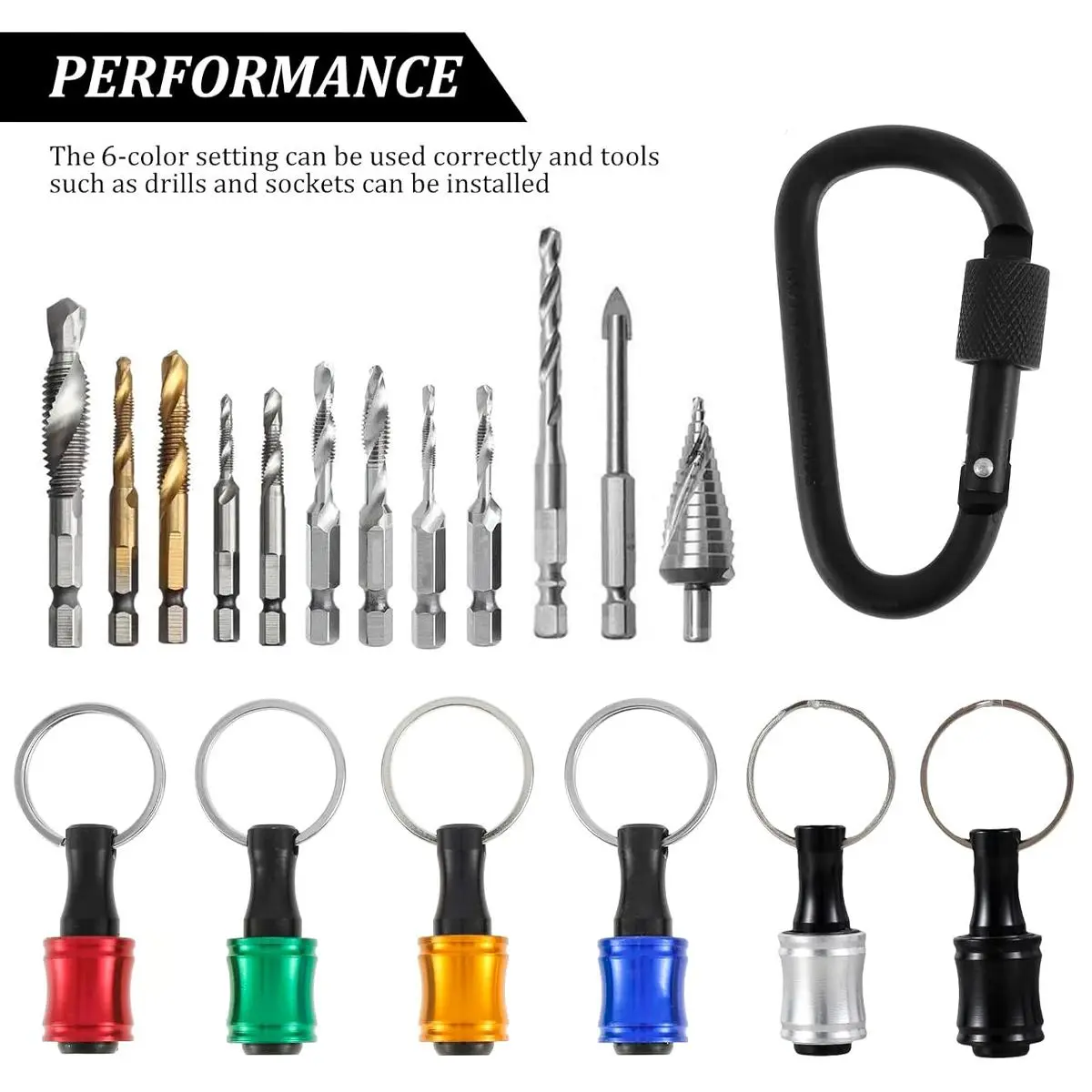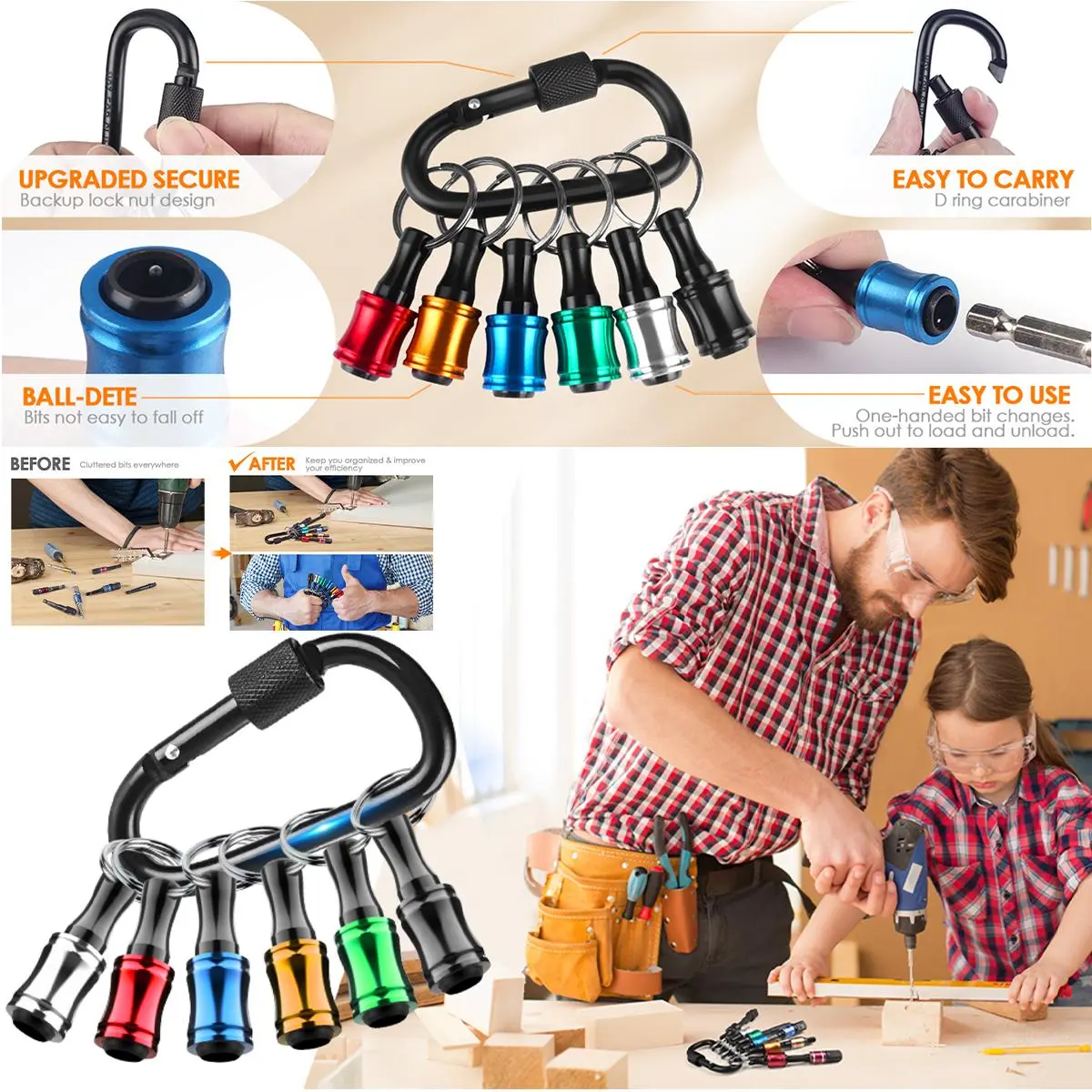 ·Portable Design: The 1/4 inch driver bit holder comes with a carabiner, allowing you to easily attach and secure it to a belt, chain buckle, or tool bag for easy portability. Six color designs, each color-coded, allow you to quickly find the drill bit you need, helping you organize and track chucks and drill bits easily.