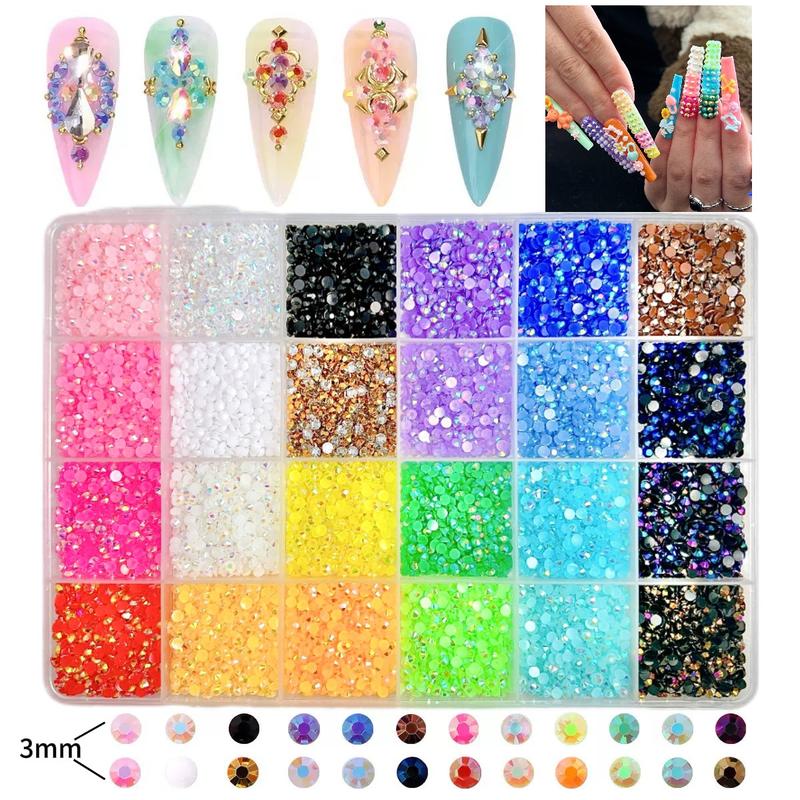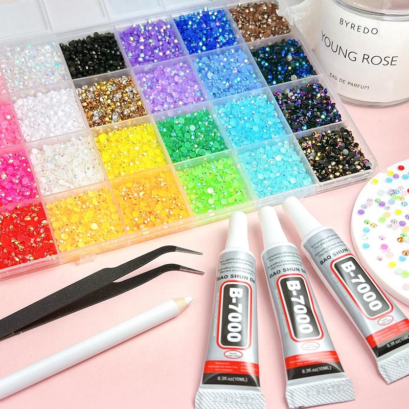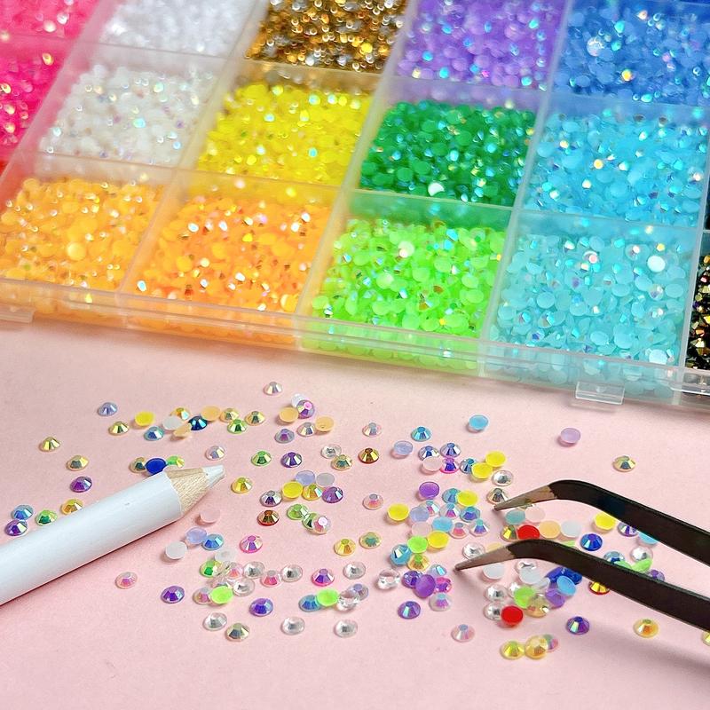 4. 1 Box 24 Colors Semi-circular Rhinestones Bedazzling Kit, 3mm Multi-colors Hot Selling Flatback Resin Diamond Nail Gems DIY Phone Case Headphone Pen Nail materials Rhinestone Decorations