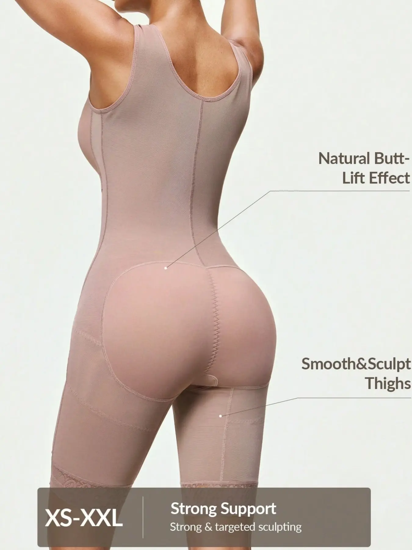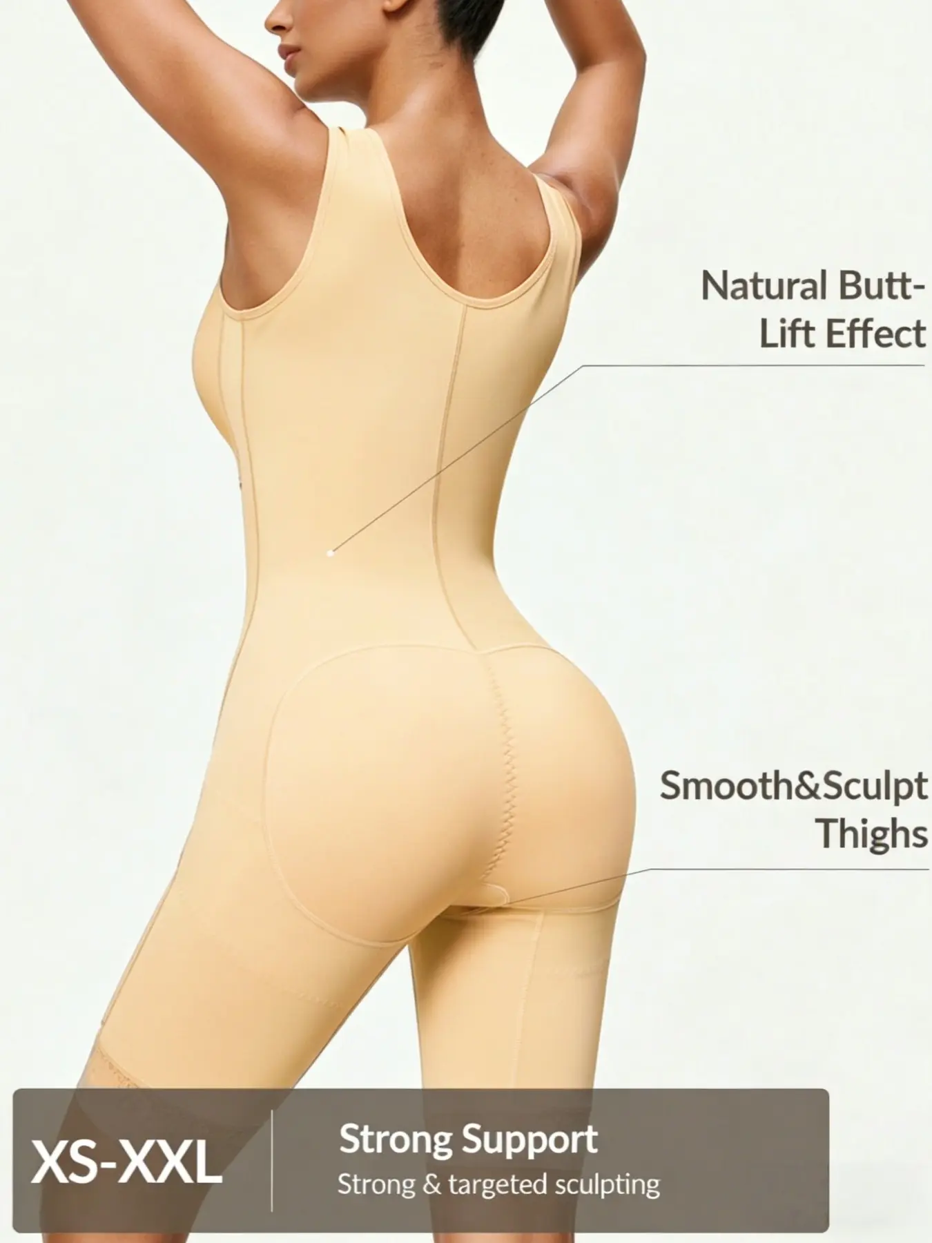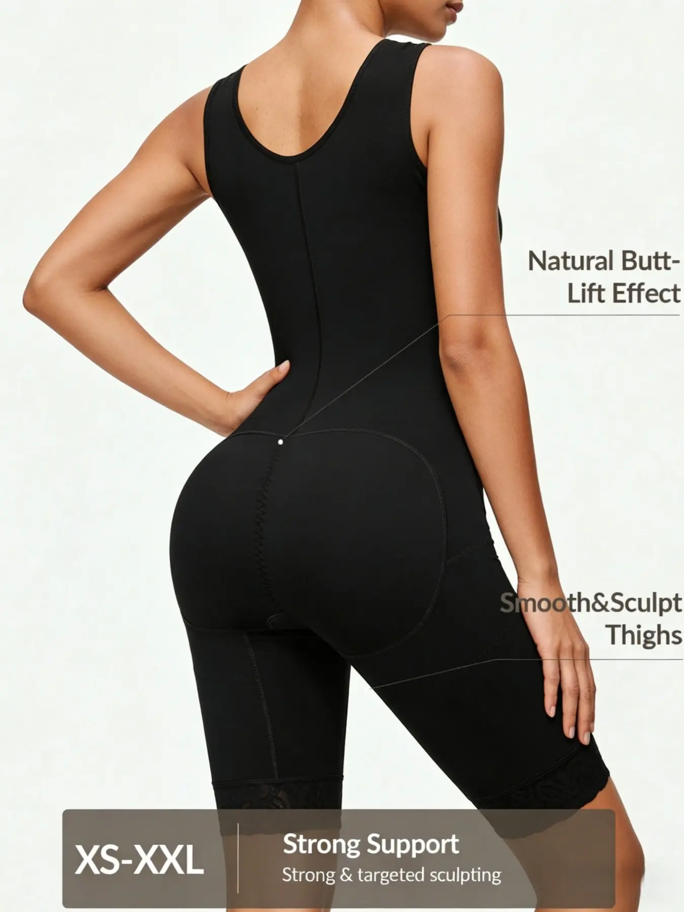 【Sculpting Body】: Crafted for a sculpting effect, this bodysuit lifts the butt while controlling the tummy, creating a streamlined appearance.