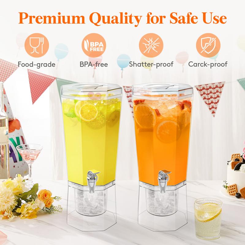 Elevate your party with the Lifewit 1 Gallon Drink Dispenser! This BPA-free ABS spout features a leak-proof design, perfect for juice, soda, tea, and lemonade. The 4L capacity ensures you have plenty of refreshments for guests. Each dispenser includes a stand and lid, making it party-ready. Package includes 3 dispensers.