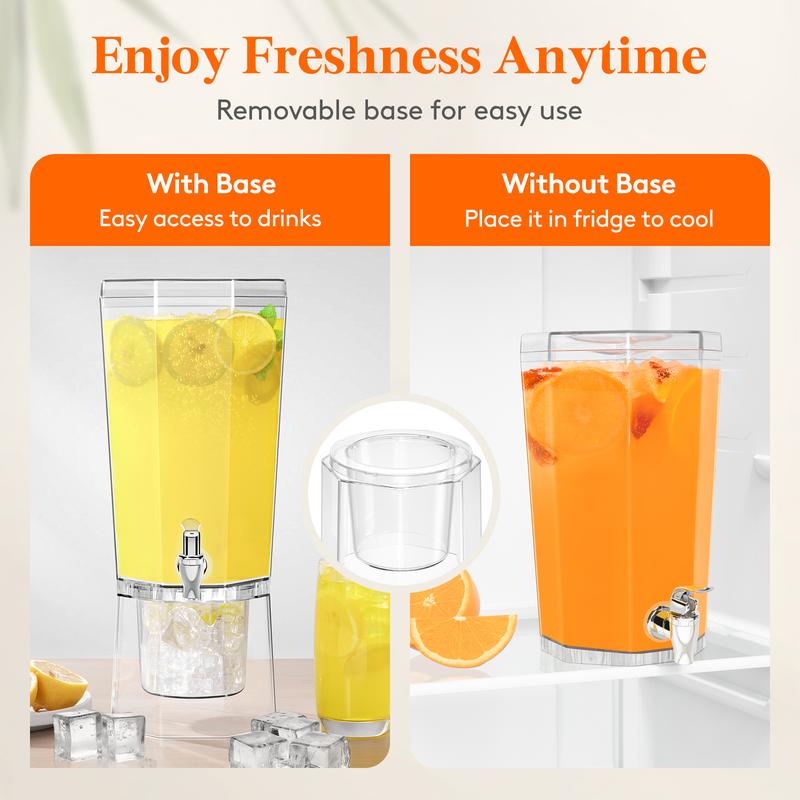 ·Cooling: Detachable ice storage base for extra cooling or fridge use Ideal for serving cocktails or flavored water at events. Enjoy a modern, transparent design that complements any setting.