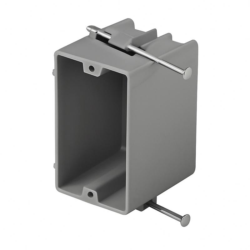 For new work projects, a sturdy electrical outlet box is essential to meet the demands of modern building construction. The 1-Gang PVC New Work Switch/Outlet Wall Electrical Box protects your wire connections by enclosing them securely. Boasting a 20 cubic inch capacity, this single-gang outlet box is designed for use with non-metallic sheathed (NM-B) cables. It is crafted from lightweight polyvinyl chloride (PVC) to ensure durability and easy maintenance. For connection, the 4 clamps provide a firm and secure grip on your wires to prevent accidental loosening. With the included nails for a quick mounting process, this switch box prioritizes safety while maintaining peak performance.