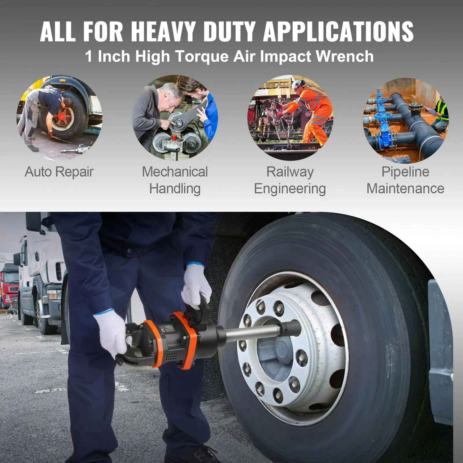 • Beast Performance: Deliver up to 2900 foot-pounds high torque output and the breakaway torque even reaches 3160 ft-lbs, more powerful air impact wrench to tackles heavy duty vehicle applications, like heavy truck, bus, and tractor tires.