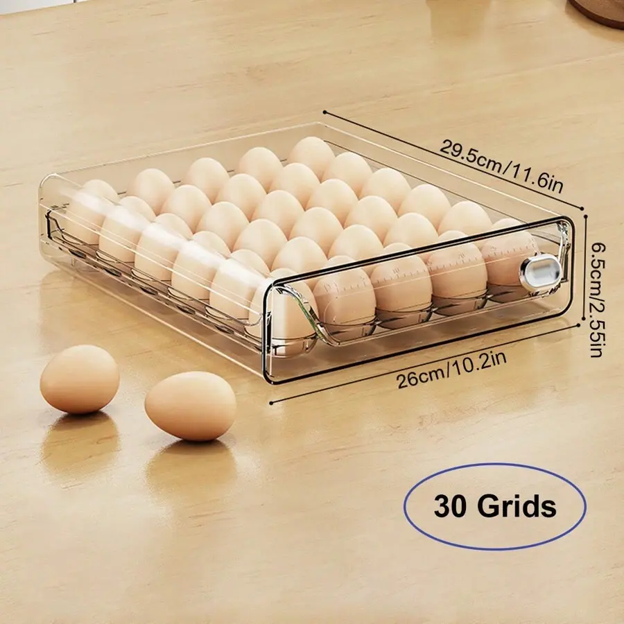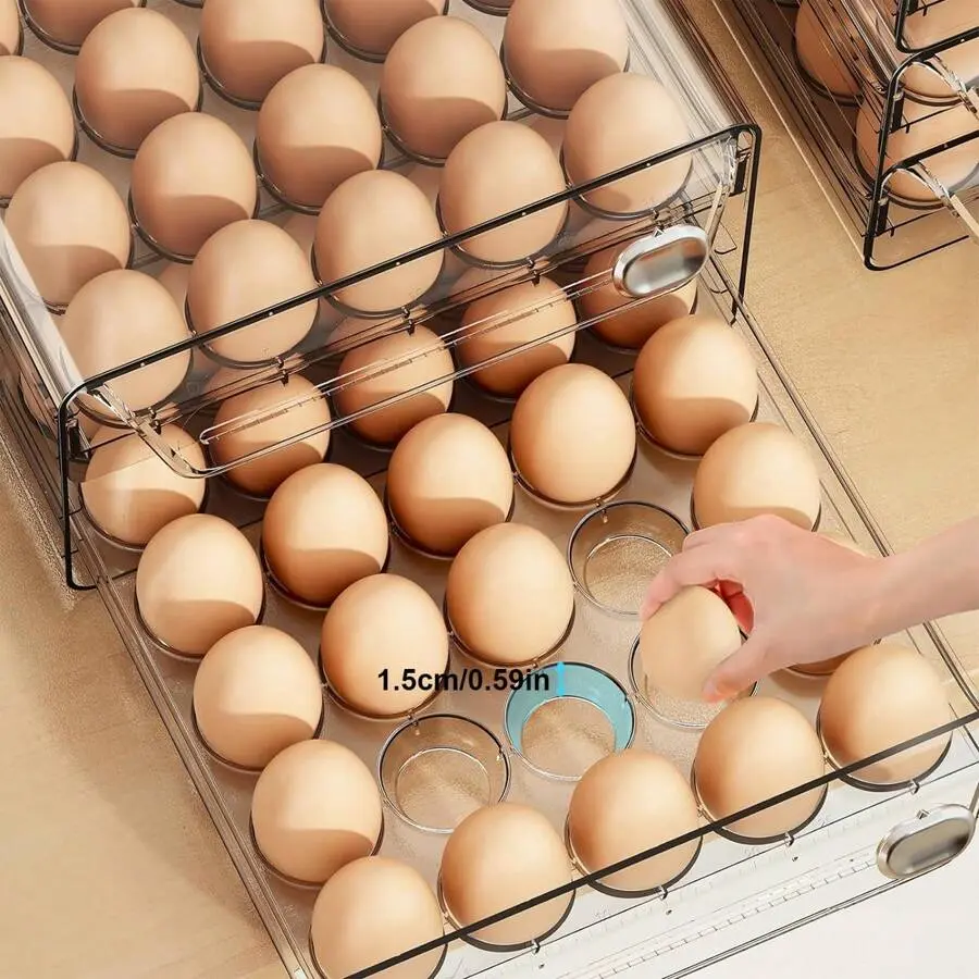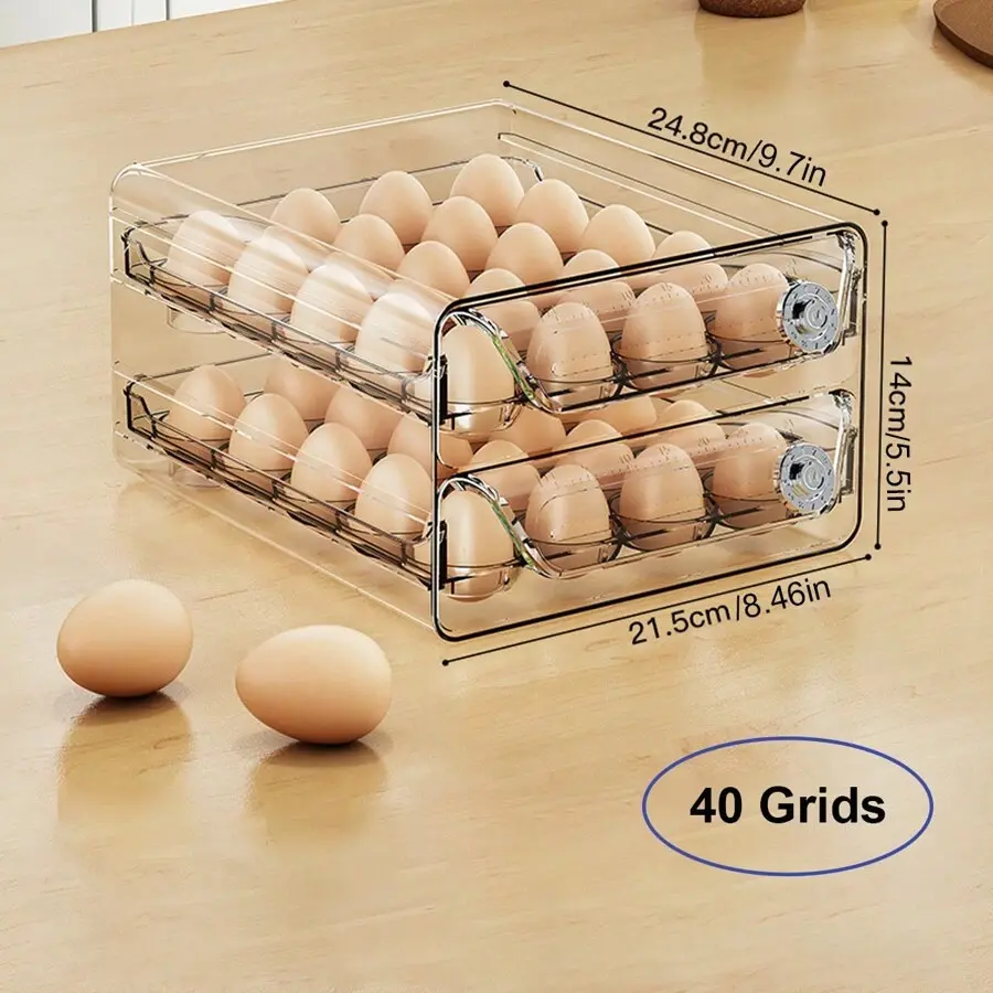 1-Tier/2-Tier Egg Storage Box-Stackable, Space-Saving, & Fresh!Keep your eggssecure, organized, and easily accessiblewith thismulti-layer egg storage set!Designed for refrigerators, kitchens, or pantries, thisPET plastic egg trayfeatures adrawer-style designfor effortless use andstackable layersto save space.Why You’ll Love It:Multiple Capacity Options– Choose from30/40/60 gridsizes to fit your needs.Stackable & Space-Saving – 1-tier or 2-tier.design allows vertical storage in tight fridge spaces.Drawer-Style Convenience– Slide-out trays make grabbing eggs quick and easy.Durable & Transparent– Made fromhigh-quality PET plasticfor long-lasting use; clear design lets you check egg levels at a glance.Freshness Protection– Securely holds eggs in place toprevent cracks and rolling.Versatile Use– Great forchicken eggs, quail eggs, or even small fruits like kiwis and plums!Ideal For:Home kitchens, restaurants, bakeriesFarmers’ markets, homesteadersFridge, pantry, or countertop storageUpgrade your kitchen organization with thispractical, space-saving egg storage box-order yours today!Color:Multicolor