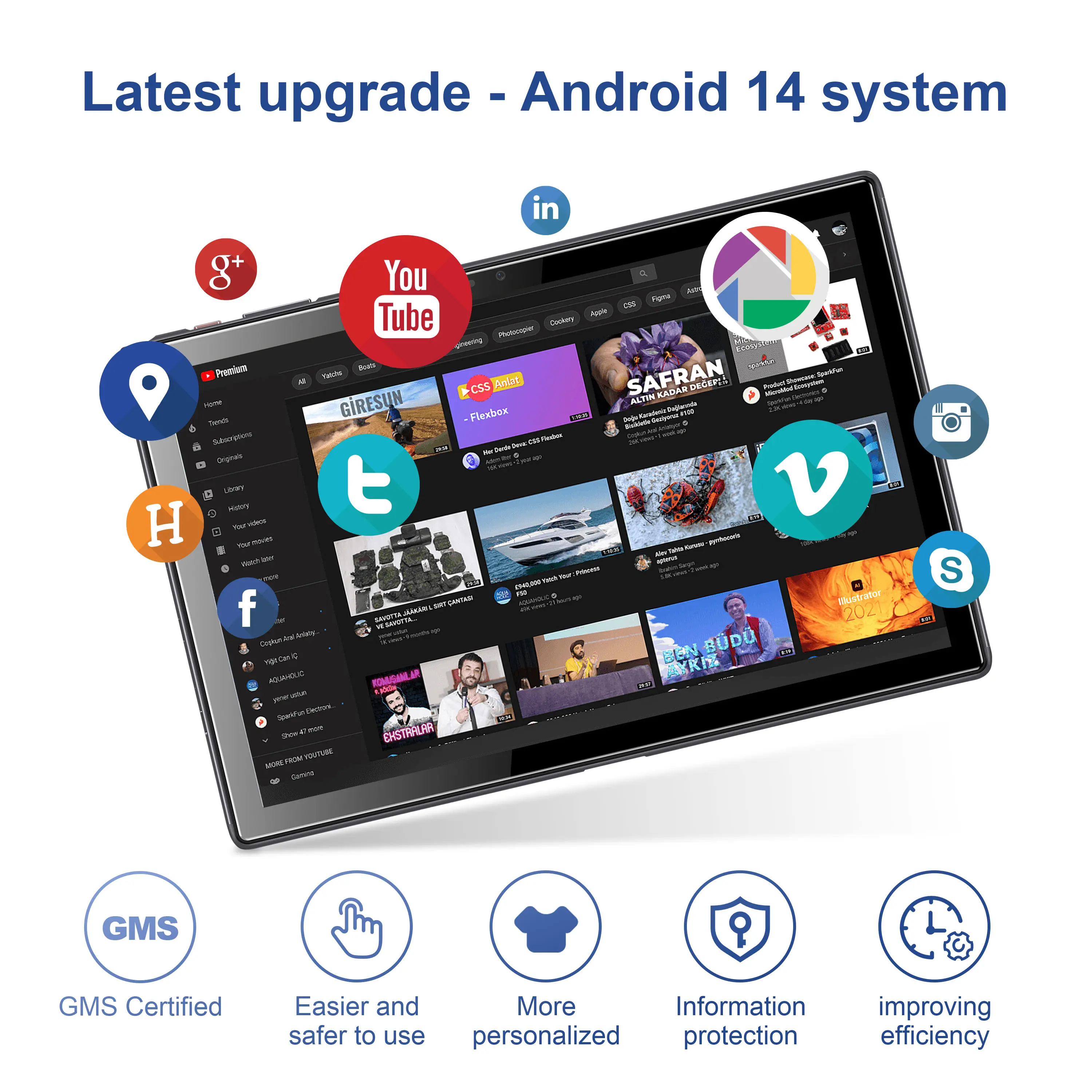 ·【Latest Android 14 Tablet】The latest GMS-certified Android 14 system brings you a more personalized, secure, and easy-to-use experience. Pre-installed Google Play supports Twitter, YouTube, TikTok, Netflix, Instagram, and other trendy social apps. Support various video decoding formats and have a 3.5mm stereo headphone port.