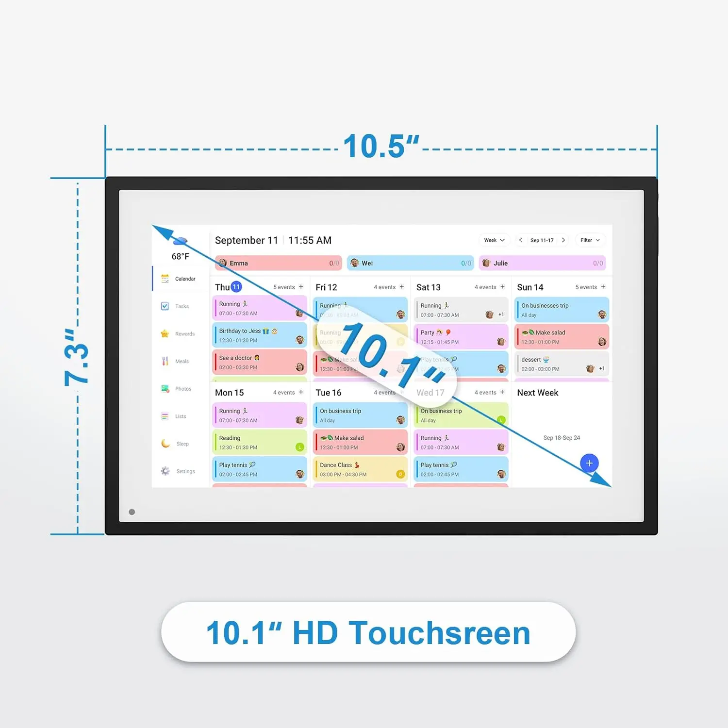 ·【Quich Setup&Seamless Calendar Syncing】Just plug in, connect to Wi-Fi, and sync your calendars in minutes. Compatible with Google, iCloud, Outlook, Cozi, and Yahoo. Add events directly on the device or through the eCalendar app. Exclusive member magic import function, send or forward PDF and other file formats or photos to the calendar email, and they can be automatically converted into calendar events and images, simplifying life.