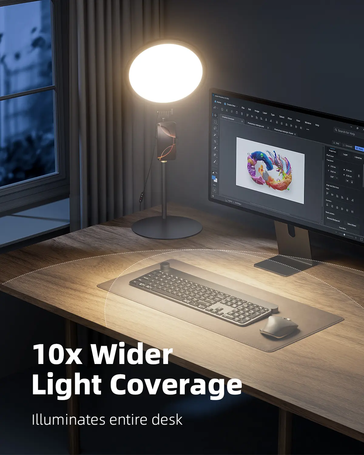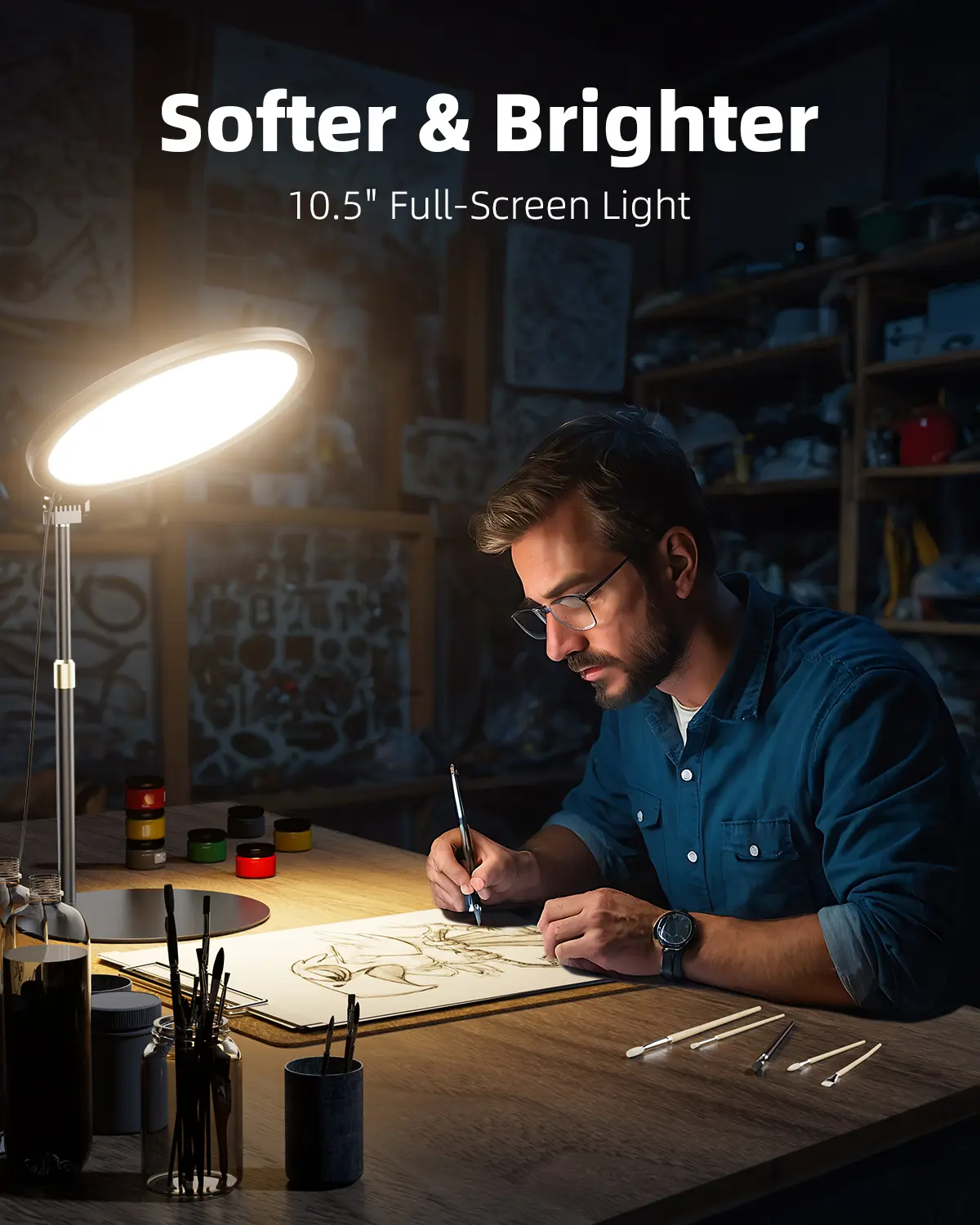 ·BRIGHTER & SOFTER RING LIGHT: This desk ring light with slim, full-panel LED ring light advanced-tech, surpasses traditional ring light, providing glare-free, uniform & softer light for video recording, zoom meetings, video conference lighting, podcast lighting, TikTok, YouTube, live streaming, makeup, video calls, photography, gaming, selfie light