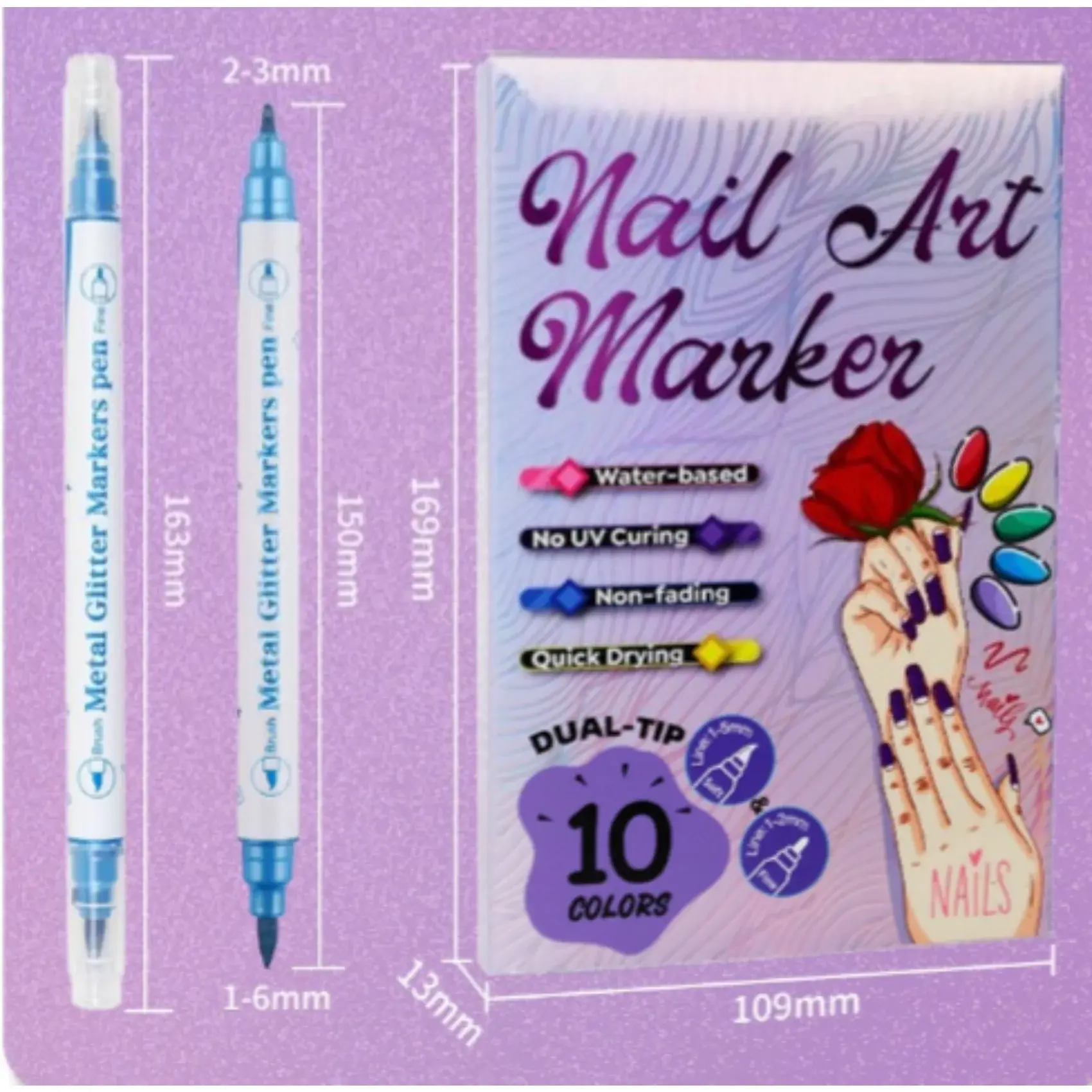 I love these nail art markers ! The colors are vibrant, easy to control, and perfect for detailed nail art. The paint flows smoothly without smudging, making designs simple even for beginners. Great quality for the price — highly recommend!