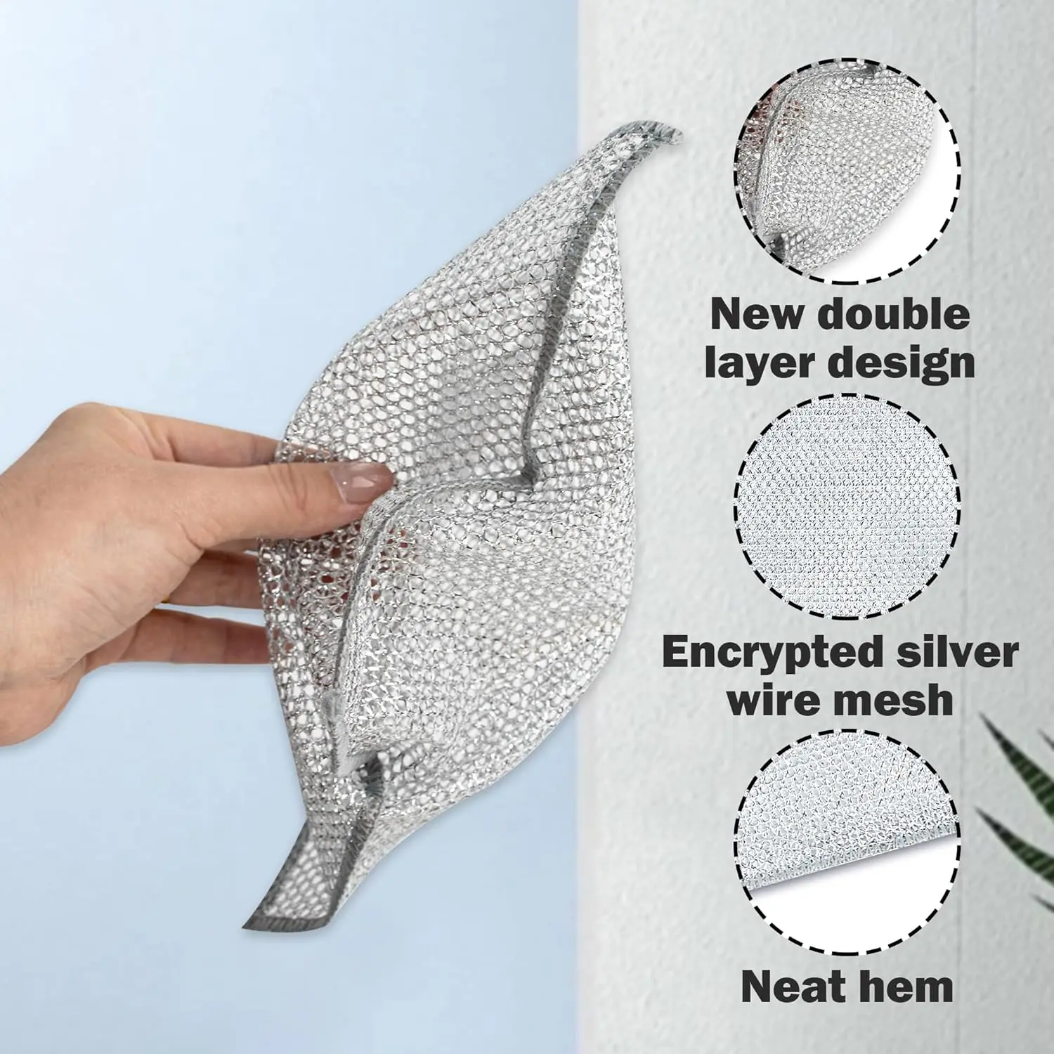 10 Counts Non Scratch Wire Dishcloth Multipurpose Wire Dishwashing Rag Metal Scrubbers for for Wet and Dry Cleaning, 2-Layer Kitchen Cleaning Cloth Cleaning Tool