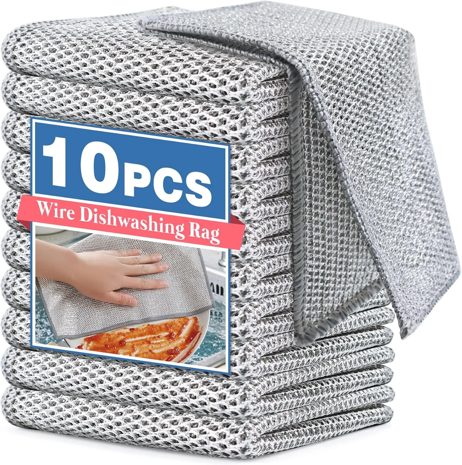 ·10 Counts Non Scratch Wire Dishcloth: This set includes 10 non-scratch wire dishcloths, perfect for various cleaning tasks. Ideal for both wet and dry cleaning, these rags are versatile kitchen cleaning tools.