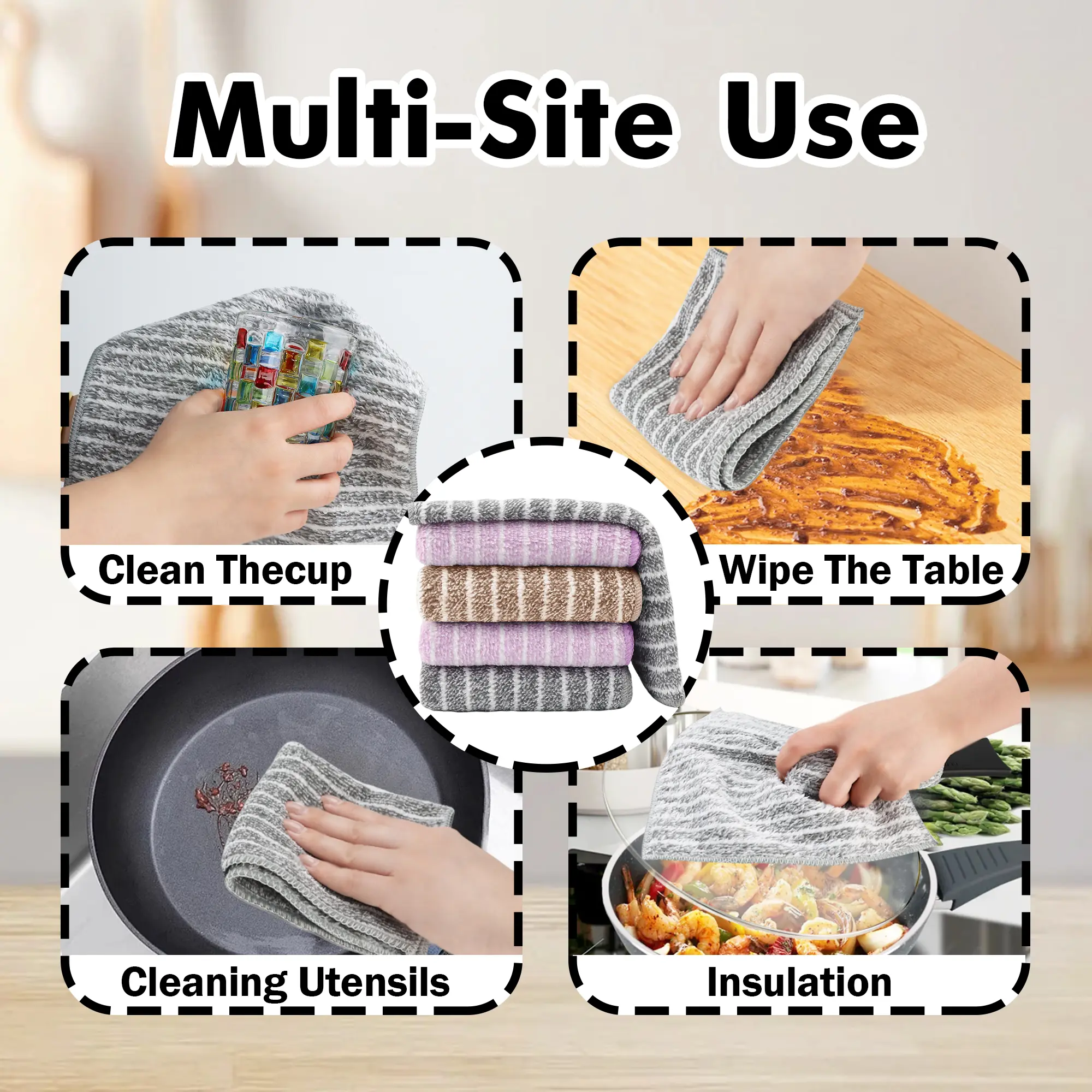 Diverse uses - The set including ten reusable kitchen towels in grey and brown, is suitable for washing dishes, wiping tables, cleaning stoves, and polishing utensils