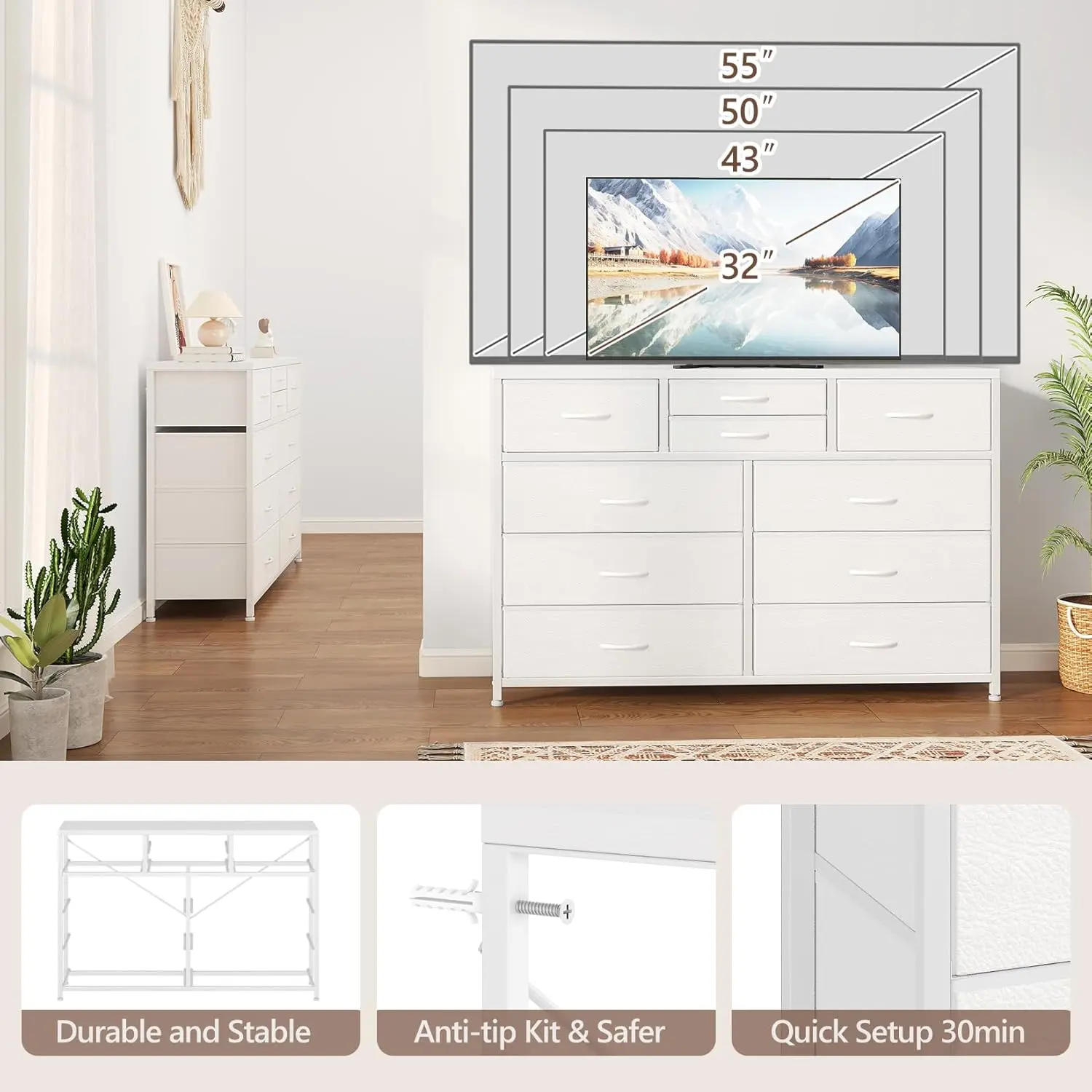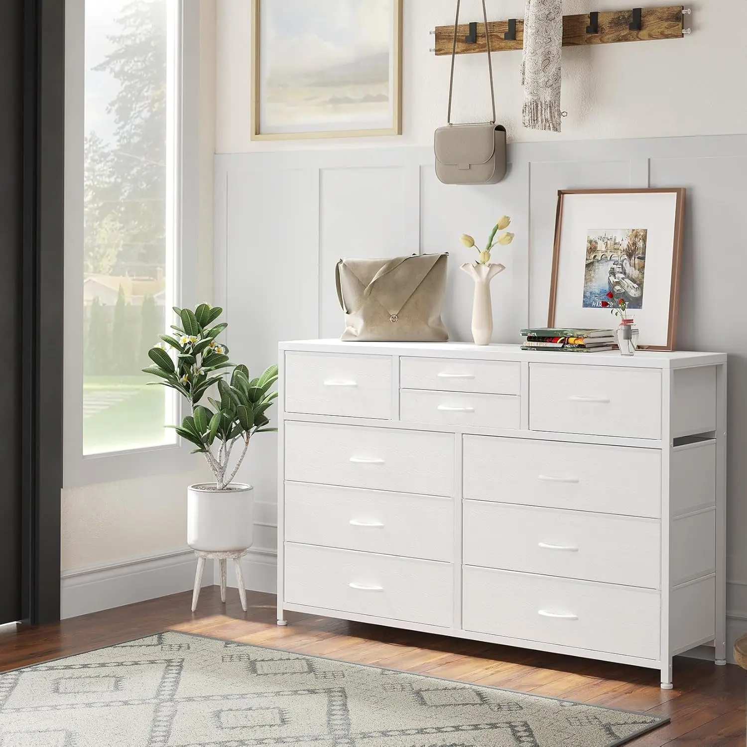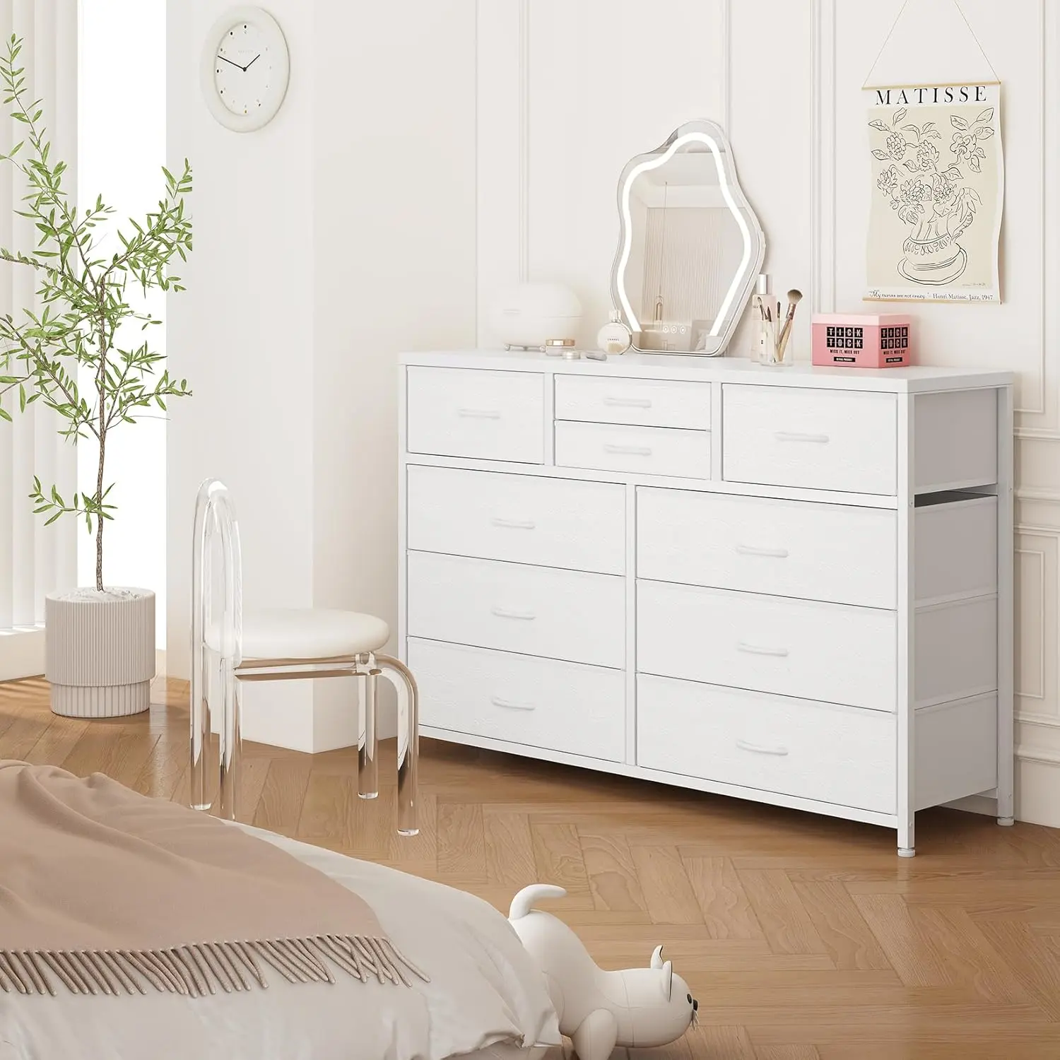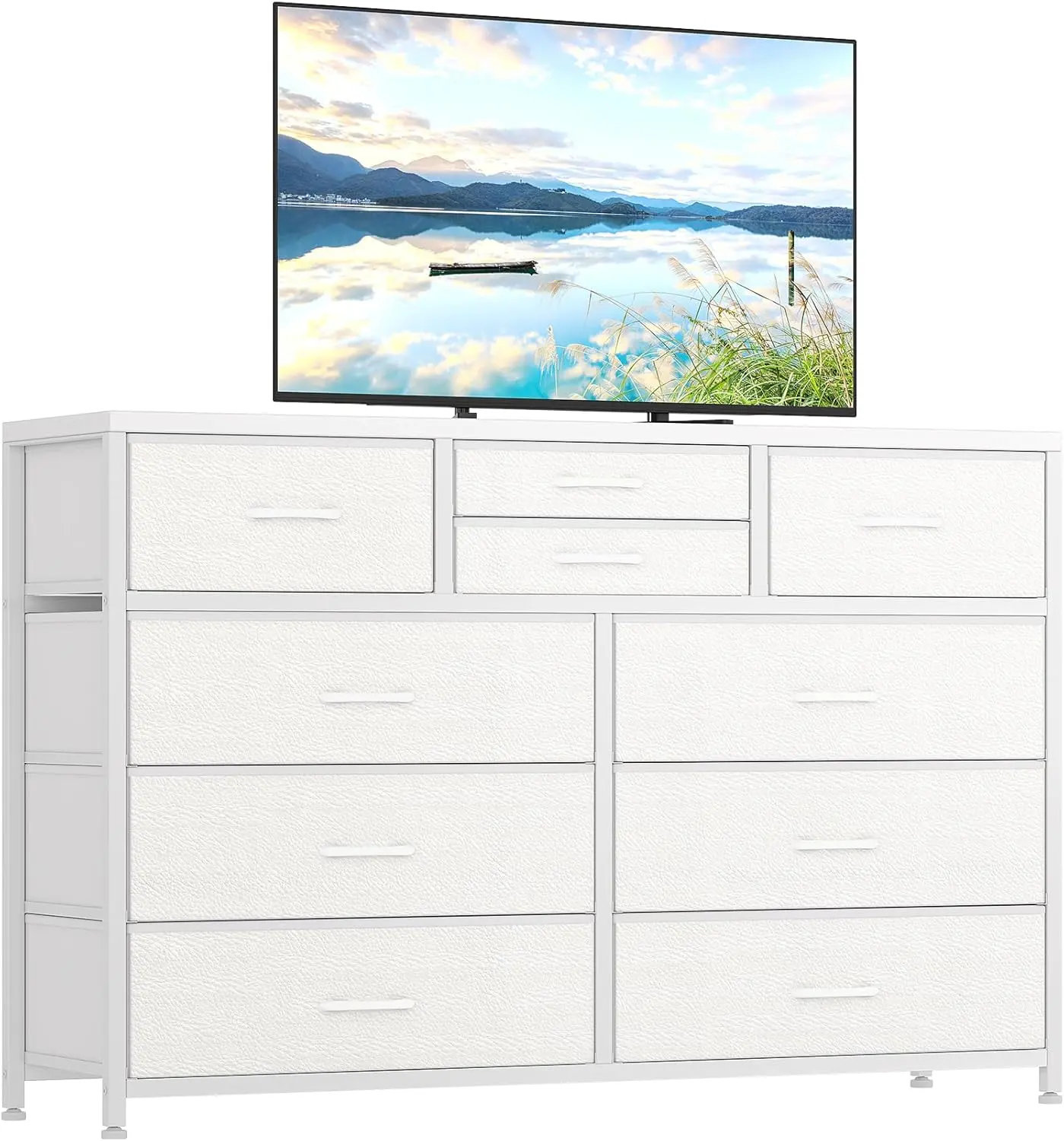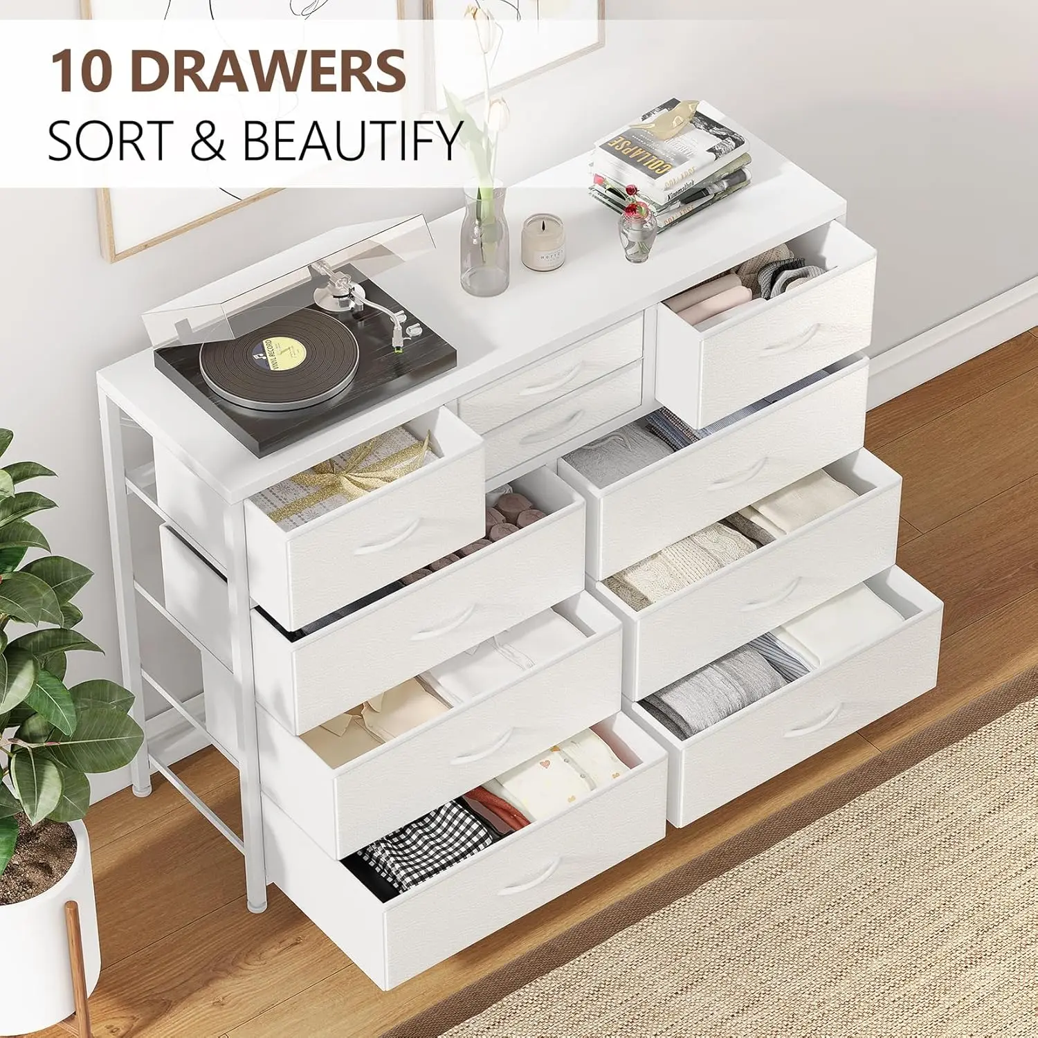 ·【Ample Storage with 10 Drawers】 This versatile 10-drawer dresser features a thoughtful combination of 6 large, 2 medium, and 2 small deep drawers, providing endless organizational possibilities for your bedroom. Enjoy the flexibility to store everything from clothes to accessories in one convenient piece.