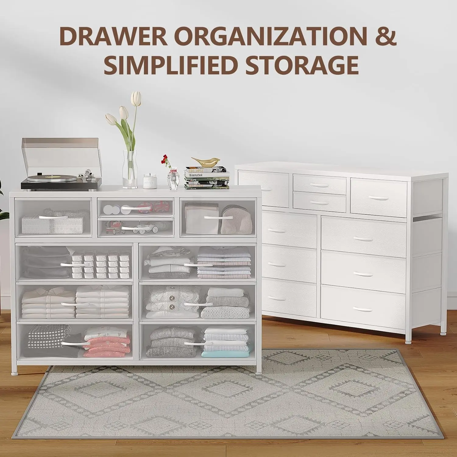 ·【Stylish Versatility】 With a sleek and modern design, this drawer chest complements various room styles. Its clean lines make it an excellent addition to living rooms, bedrooms, entryways, or bathrooms, effortlessly matching other storage furniture and enhancing your home's decor.
