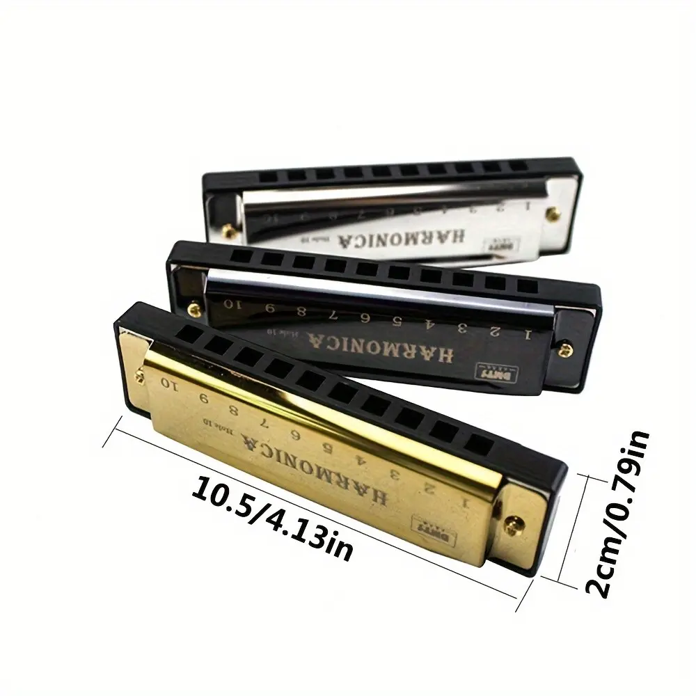 10 Hole Harmonica C Key, Durable Plastic Polished Finish, Includes Protective Case, Ideal Gift for Beginners, Gold Silver Colors Available