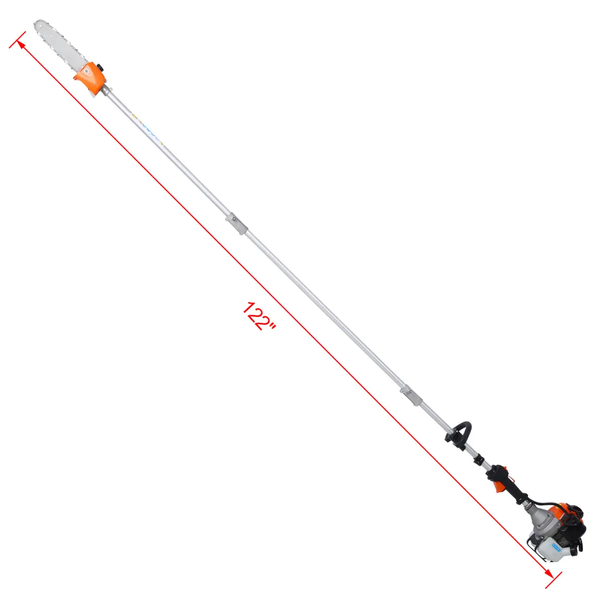 ·The 10 in 1 Multi Purpose Tool is powered by a 52cc 2 cycle gas full crank shaft engine.Full crank shaft design reduces emissions, increases fuel efficiency & provides longer life.The starter is designed to pull easily & start quickly.Included in the kit are 4 professional grade attachments.Eliminate the need for four different garden tools and save storage space in your home.
