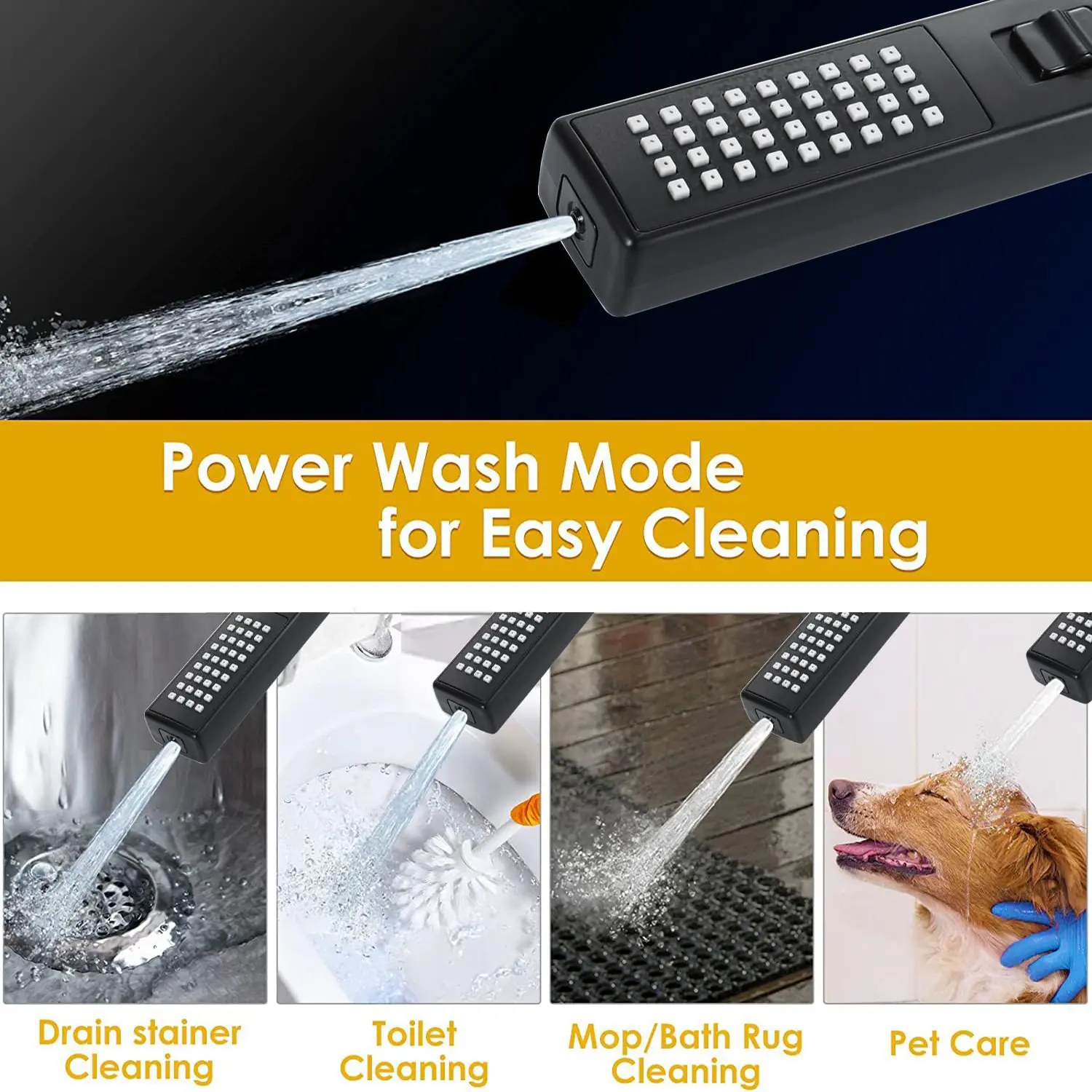 【Spray Settings + Jet Modes】The upgraded Jet modes bring more possibilities to your shower.JET: A concentrated water jet that quickly tackles stubborn stains in dead spots in the bathroom. remove foam and soap scum from walls and floors. Another Spray Settings shower modes are ideal for bathing kids, washing pets and cleaning applications .