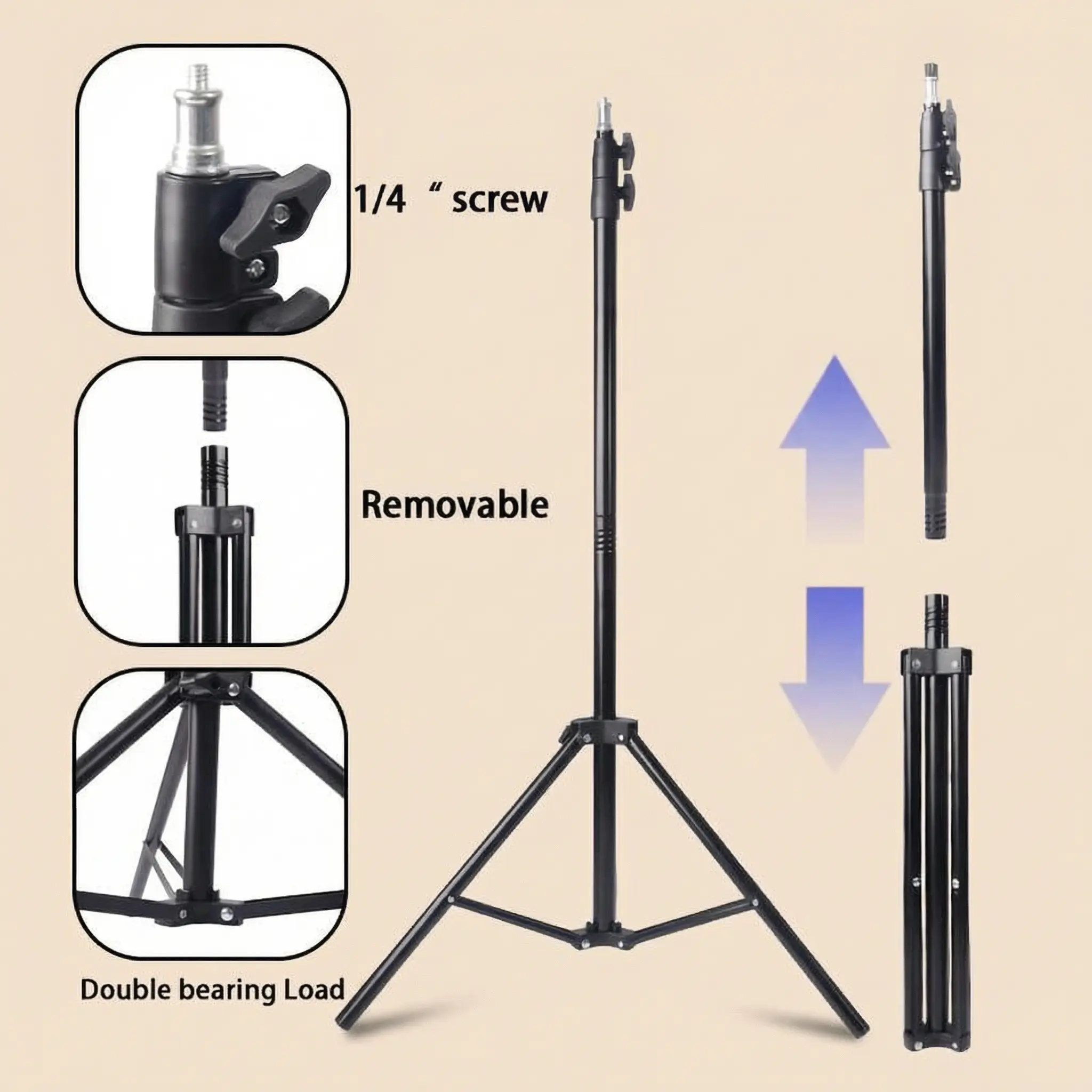 ·The stand can extend up to 1.6 meters in height, with light brightness ranging from 2200K to 4500K.