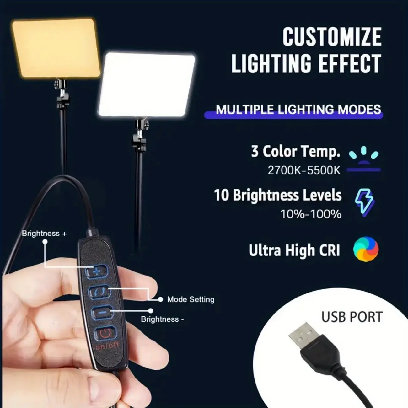 Eye-Protecting Soft Light Lamp, 10" LED Video Light with 63" Adjustable Tripod Stand - 2200-4500K Adjustable Color Temperature, 3 Lighting Modes, Stepless Dimming for Precise Brightness Control, USB Powered for Portability, Ideal for Live Streaming, Video Calls, and Content Creation#new year#valentine's day
