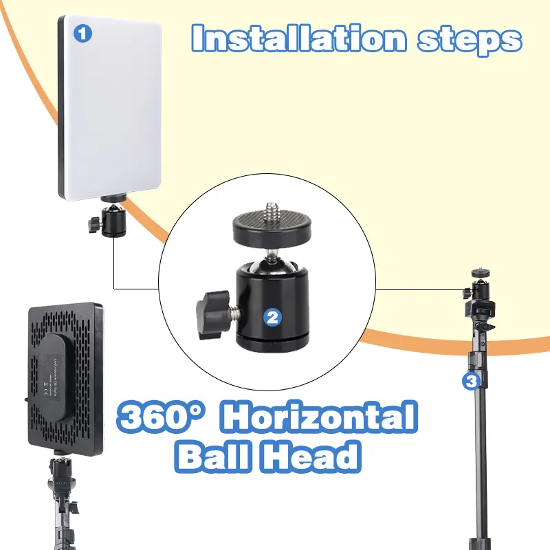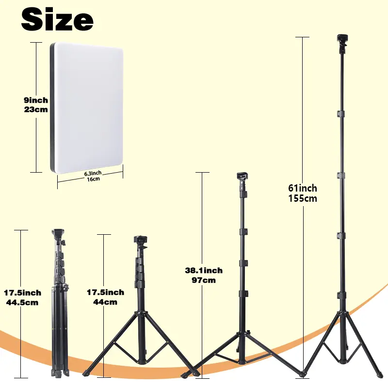 ·【ADJUSTABLE TABLETOP TRIPOD】The tripod of the video light is durable but lightweight. The light stand can be adjusted from 15.7”(40cm) to 23.6”(60cm). Storage size 8.7"(22cm), perfect to store and carry. Simply adjust the height by pulling the middle pole. Attach and detach the light panel easily with the 1/4" threads on the top of the tripod. Loosen the screw on side to rotate the light panel angle in range of 280°, perfect for tabletop and low-angle shooting.