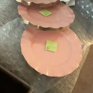 5. 10-Pack Plastic 11" Round Dinner Plates in Dusty Rose Ruffled Rim with Gold Edging - Sturdy Disposable Dinnerware