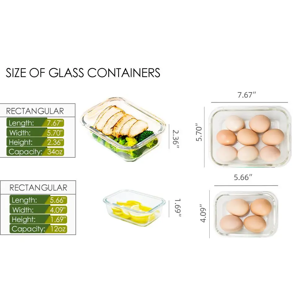 10 Pack Glass Food Storage Containers with Lids Leakproof, Airtight Glass Meal Prep Containers For Lunch, On The Go, Leftover, Dishwasher Safe