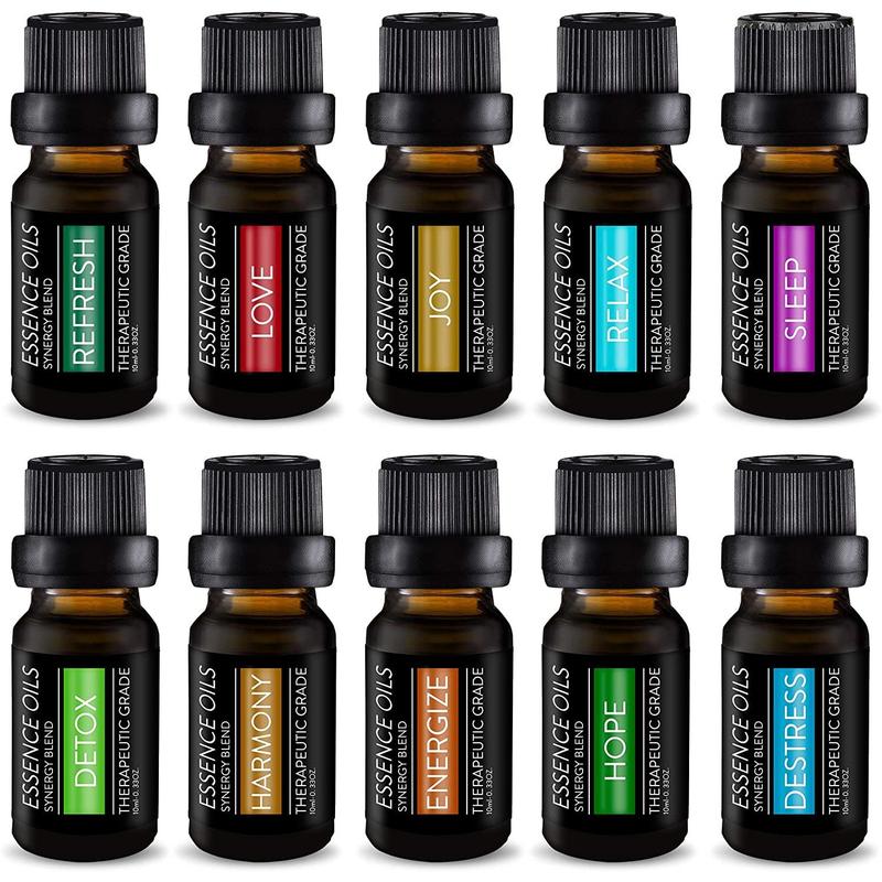 ·What's Included - 10ml Refresh Oil Blend, 10ml Love Oil Blend, 10ml Joy Oil Blend, 10ml Relax Oil Blend, 10ml Sleep Oil Blend, 10ml Detox oil Blend, 10ml Harmony Oil Blend, 10ml Energize Oil Blend, 10ml Hope Oil Blend, 10ml Destress Oil Blend, Gift Box