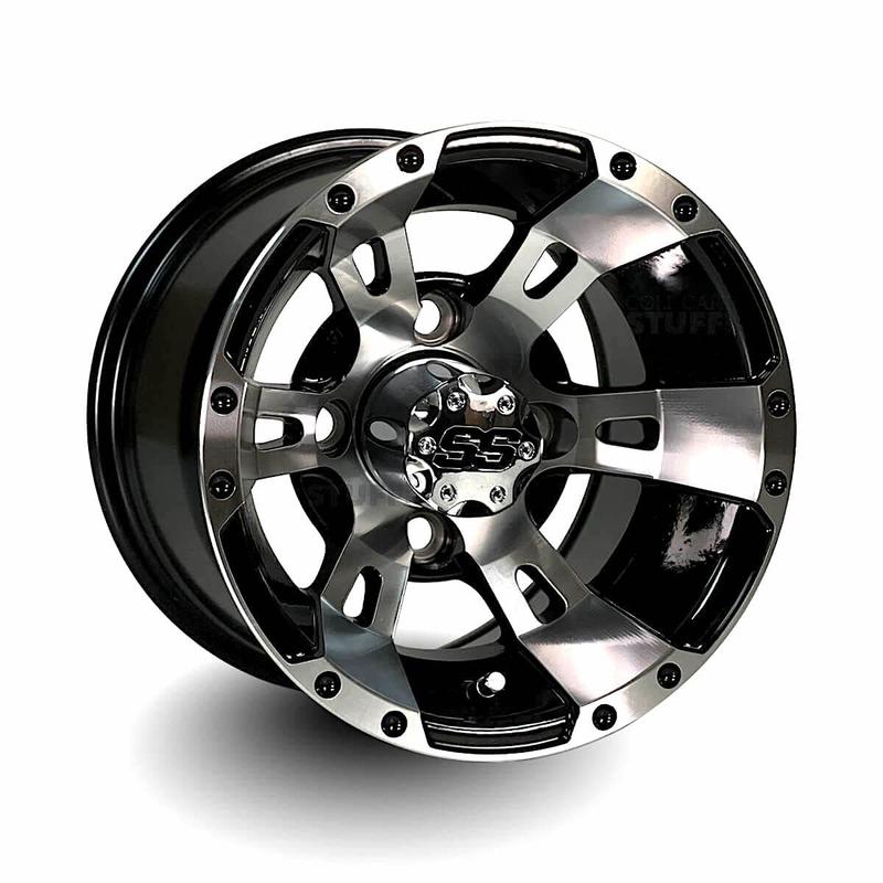 10" Stallion Black/Machined Golf Cart Wheels - 10"x7" ET-15 Offset