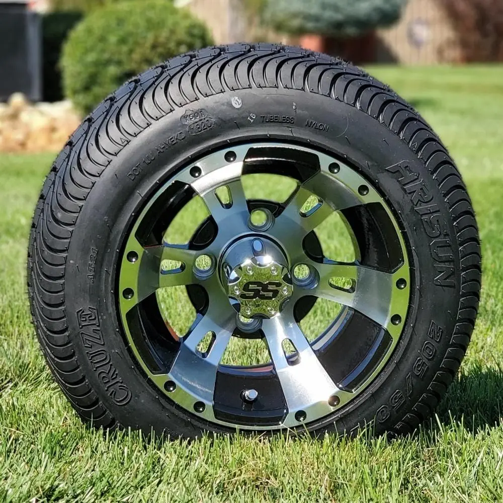 5. 10" Stallion Black/Machined Golf Cart Wheels - 10"x7" ET-15 Offset