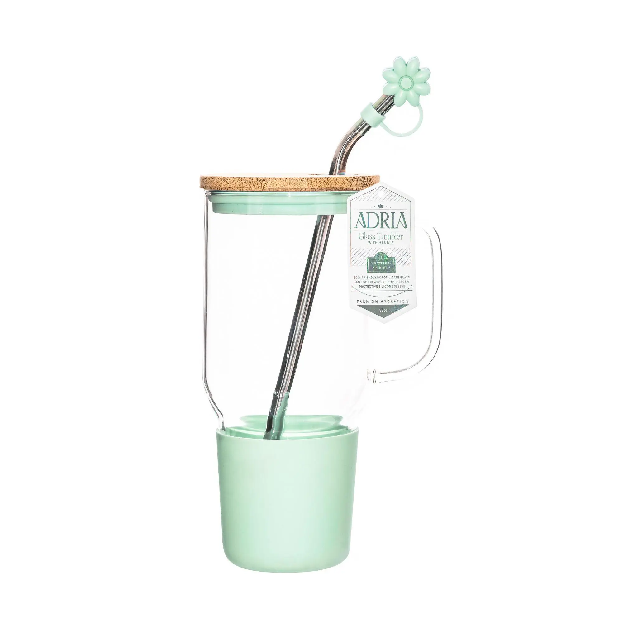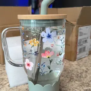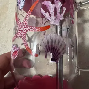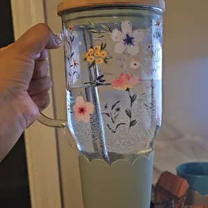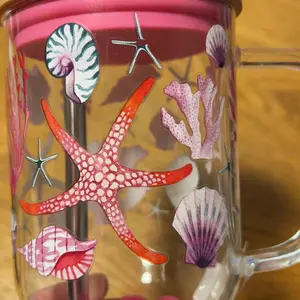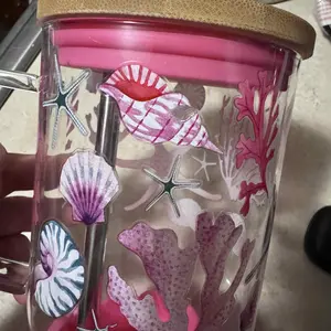 This is a beautiful glass tumbler with handle and extension rubber for the thick metal straw and big bamboo lid and I love Sea Shells and delivery was awesome, I am happy πβ€οΈ