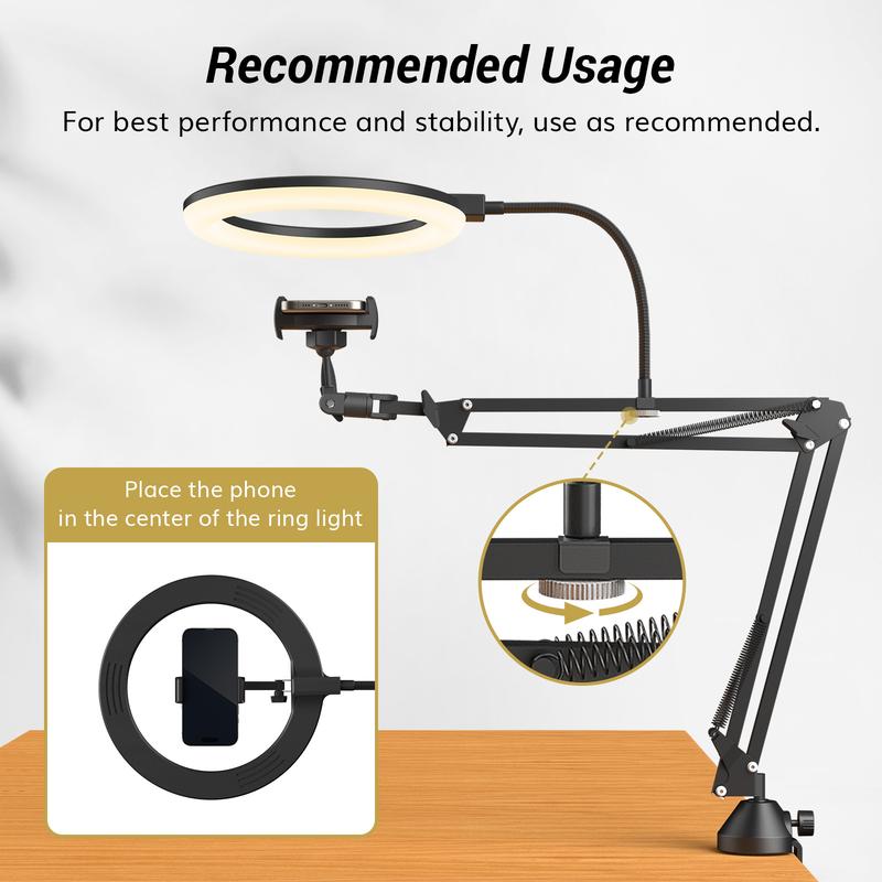 Ever struggle with dull lighting during your TikTok videos, makeup sessions, or nail art tutorials? The TONOR 10" Overhead Ring Light Kit is here to brighten your creative world! Featuring 128 high-quality LED beads, this ring light offers three color modesโwarm, natural, and coolโto perfectly match your mood and environment. With 10 adjustable brightness levels, you can dial in the perfect glow whether you're recording, live streaming, or snapping photos.