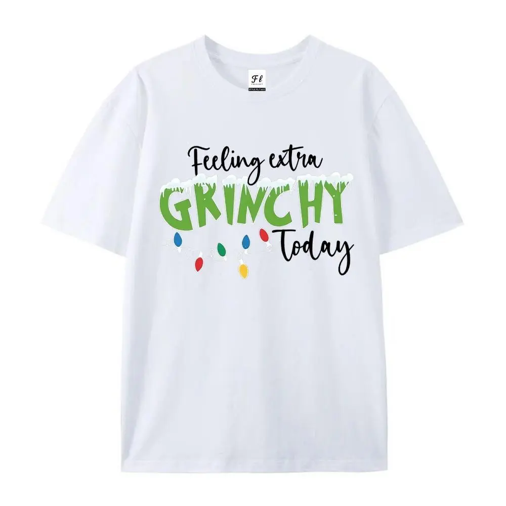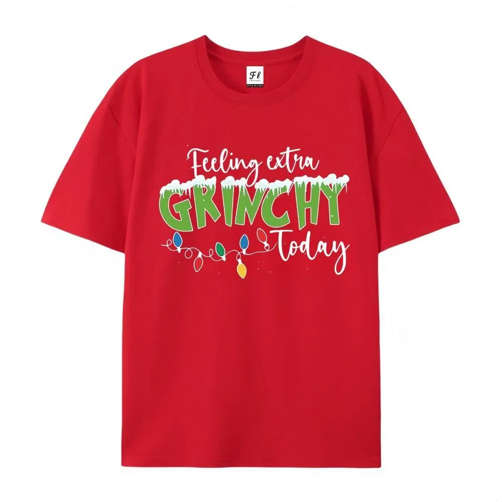 Introducing the [100% Cotton] Women's Plus Size Graphic T-Shirt! This festive design features "Feeling Grinchy Today" and a heart print. Perfect for casual wear, it offers a comfortable medium stretch crew neck and short sleeves. Ideal for both men and women, this relaxed fit top makes a great gift. ๐