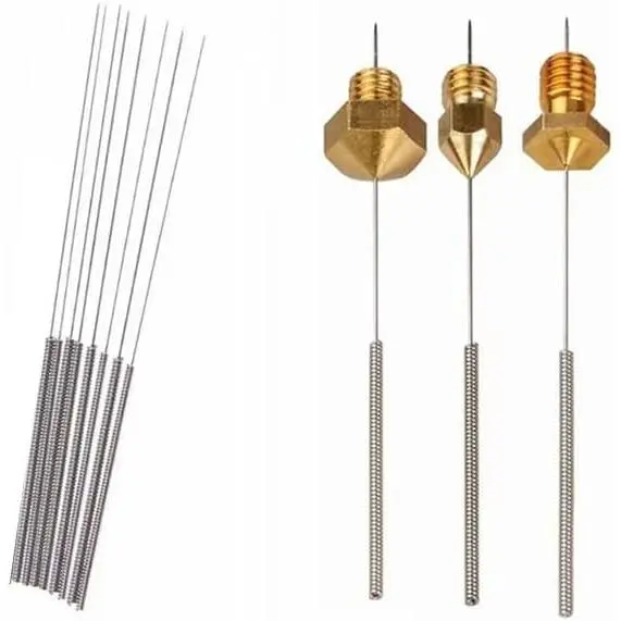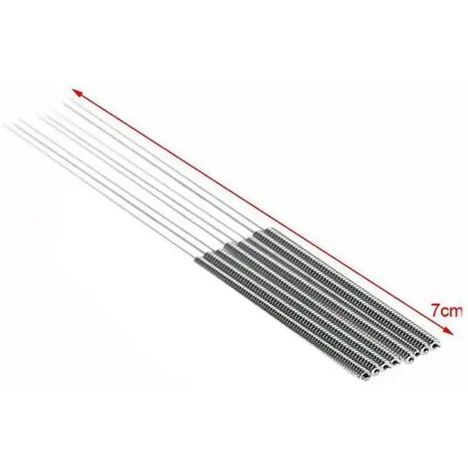 Package Include: 100 count 0.4 mm 3D printer nozzle cleaning . Nozzle cleaner 3d printer is made of high-quality stainless steel material, durable and flexible, easy to bend. Total length: 70 mm (The length of shank: 30 mm, The bit length: 40 mm)