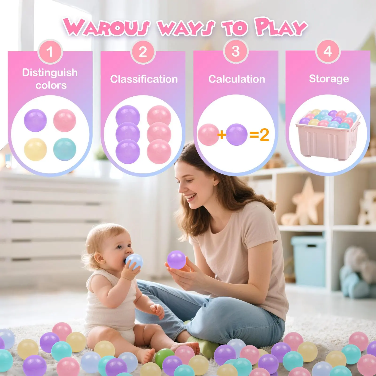 Versatile Fun for Every Occasion- Versatile Use: Not just for the pit, fill play tents, playhouses, kiddie pools, or bounce houses.- Perfect for: Birthday parties, indoor play areas, sensory bins, and bath time entertainment.