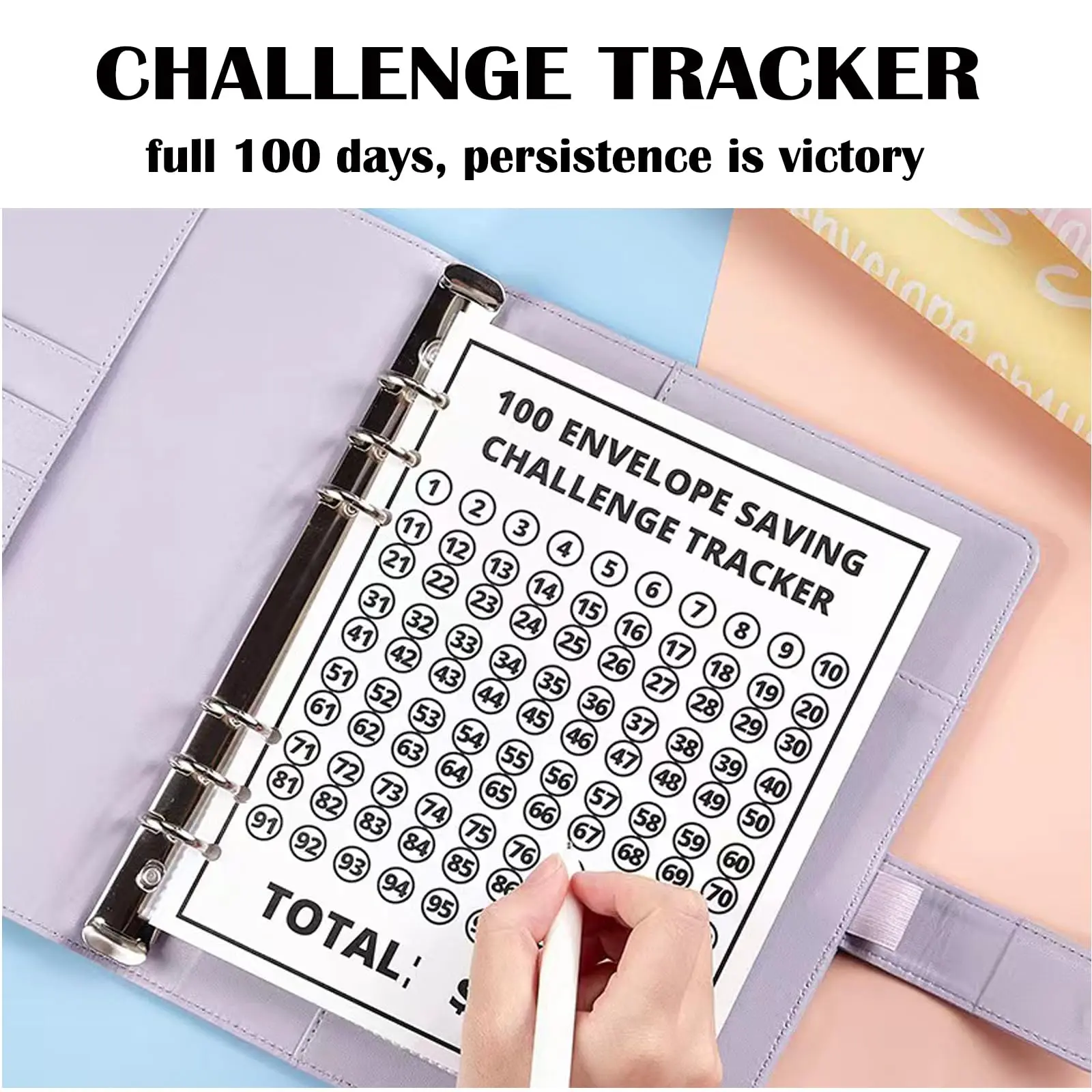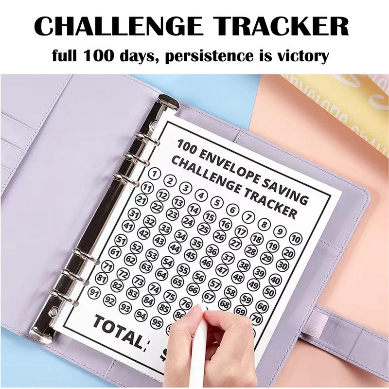 ·【New and Fun Money Saving Game】: 100 Envelope Challenge Binder, packaged with A5 sized binder, 1 laminated reusable tracker, and bags 1-100. Eight bags on one page, four bags on each side. Total 13 pages. A new way to save money that allows you and your family and children to participate together in a different way.