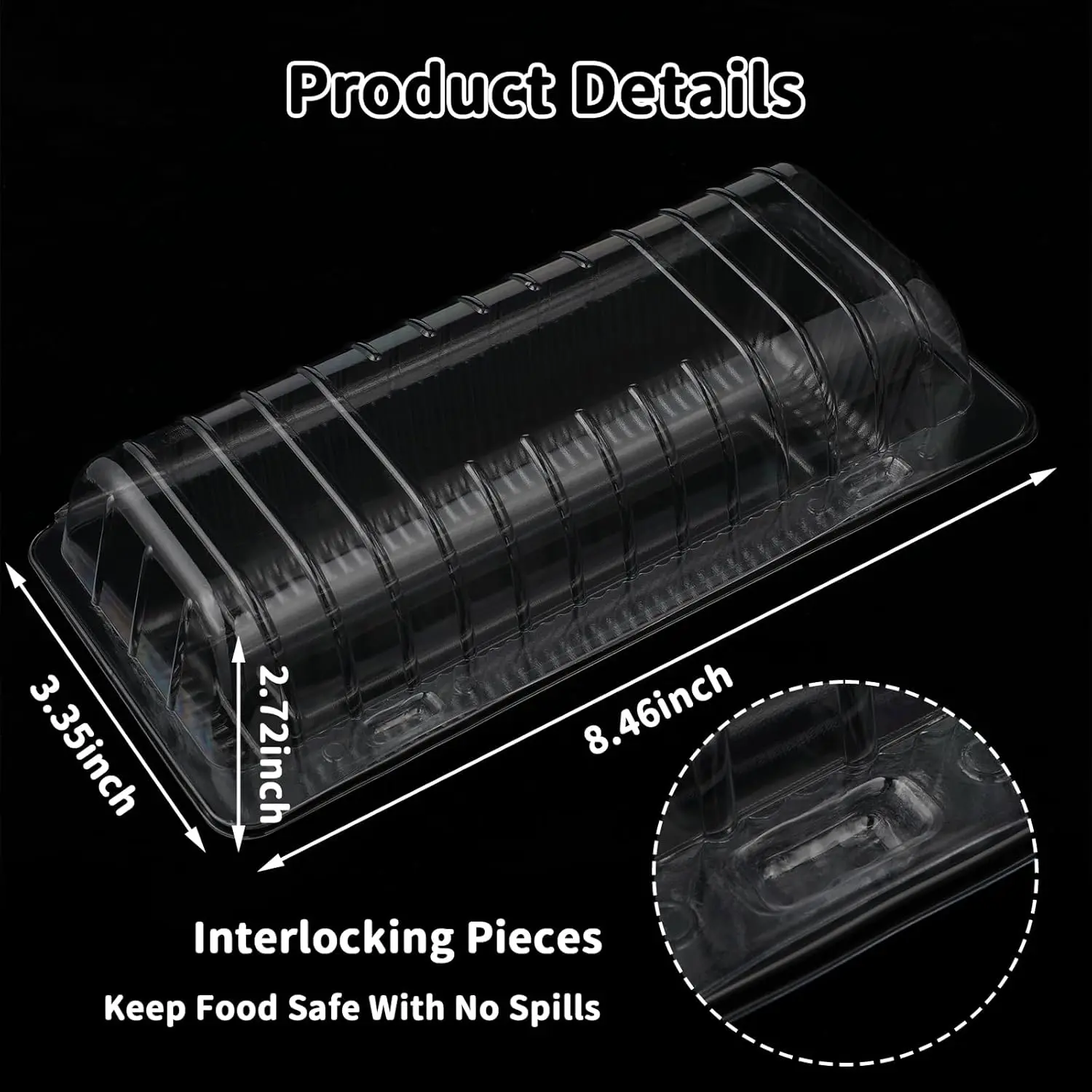 ·Versatile Hot Dog Trays: these clear, plastic clamshell takeout containers are nice for storing not just hot dogs but cakes, cookies, rolls or brownies as well; With an inner size of 8.46 x 3.35 x 2.72 inches and an outer size of 8.86 x 3.94 x 2.76 inches, these trays are freshness