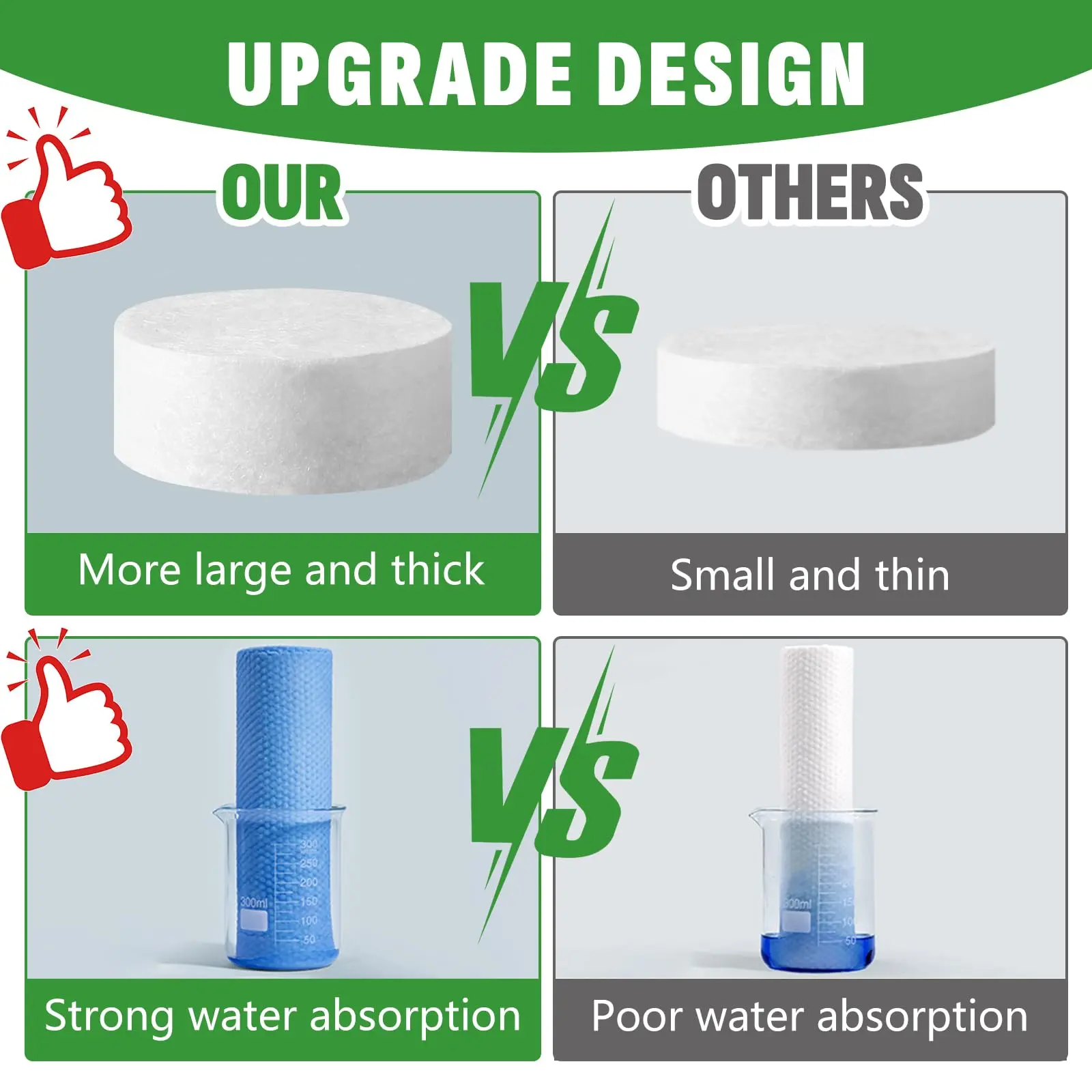 【Skin Friendly & Hypoallergenic】Our compressed towel tablets is soft and hypoallergenic, they won't irritate your skin and they can quickly clean your face, neck, shoulders, arms, hands, legs, etc. They can also be used for babies and pet