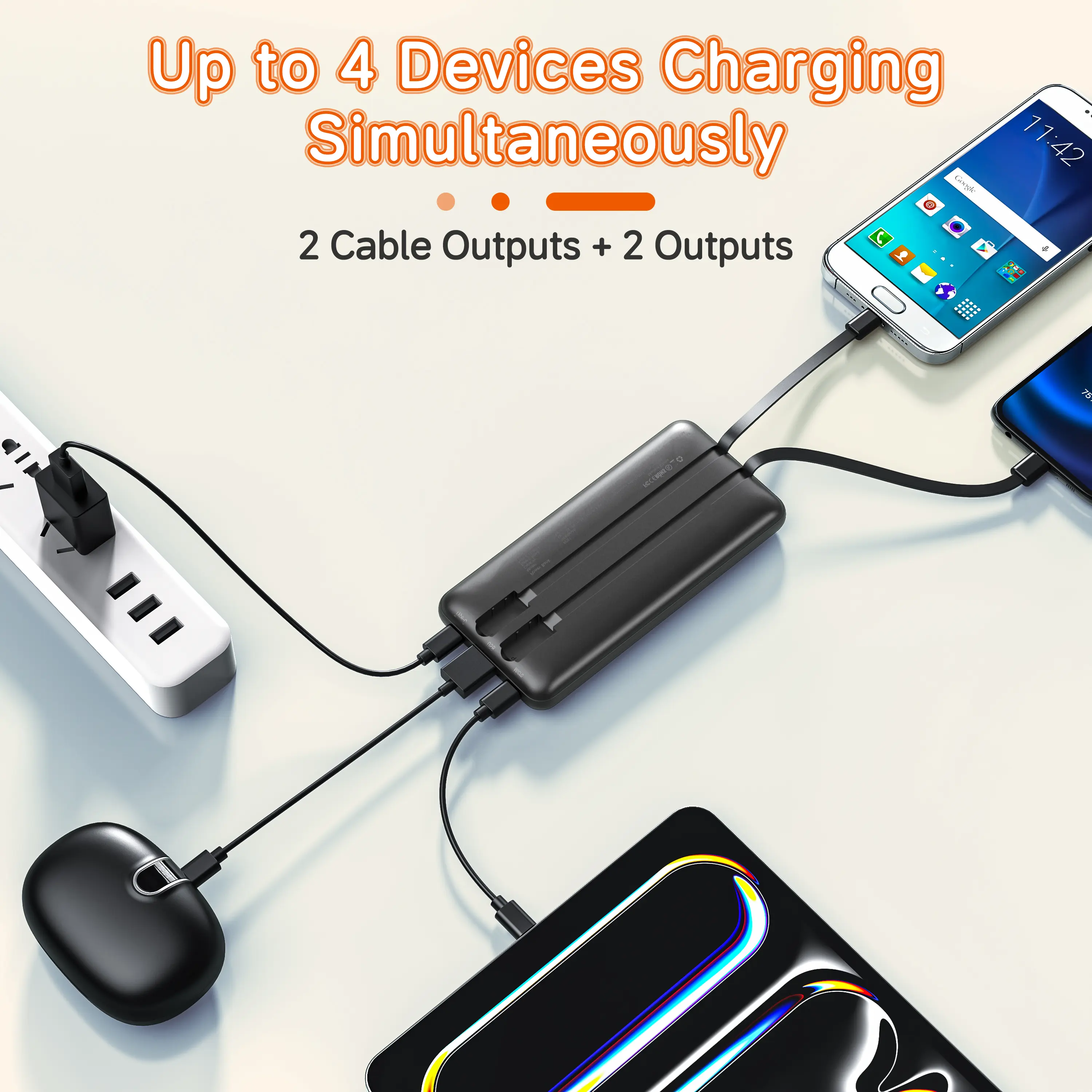 Built-in Cables: Charge your iPhone, Samsung, tablets, and more without carrying extra cords.
