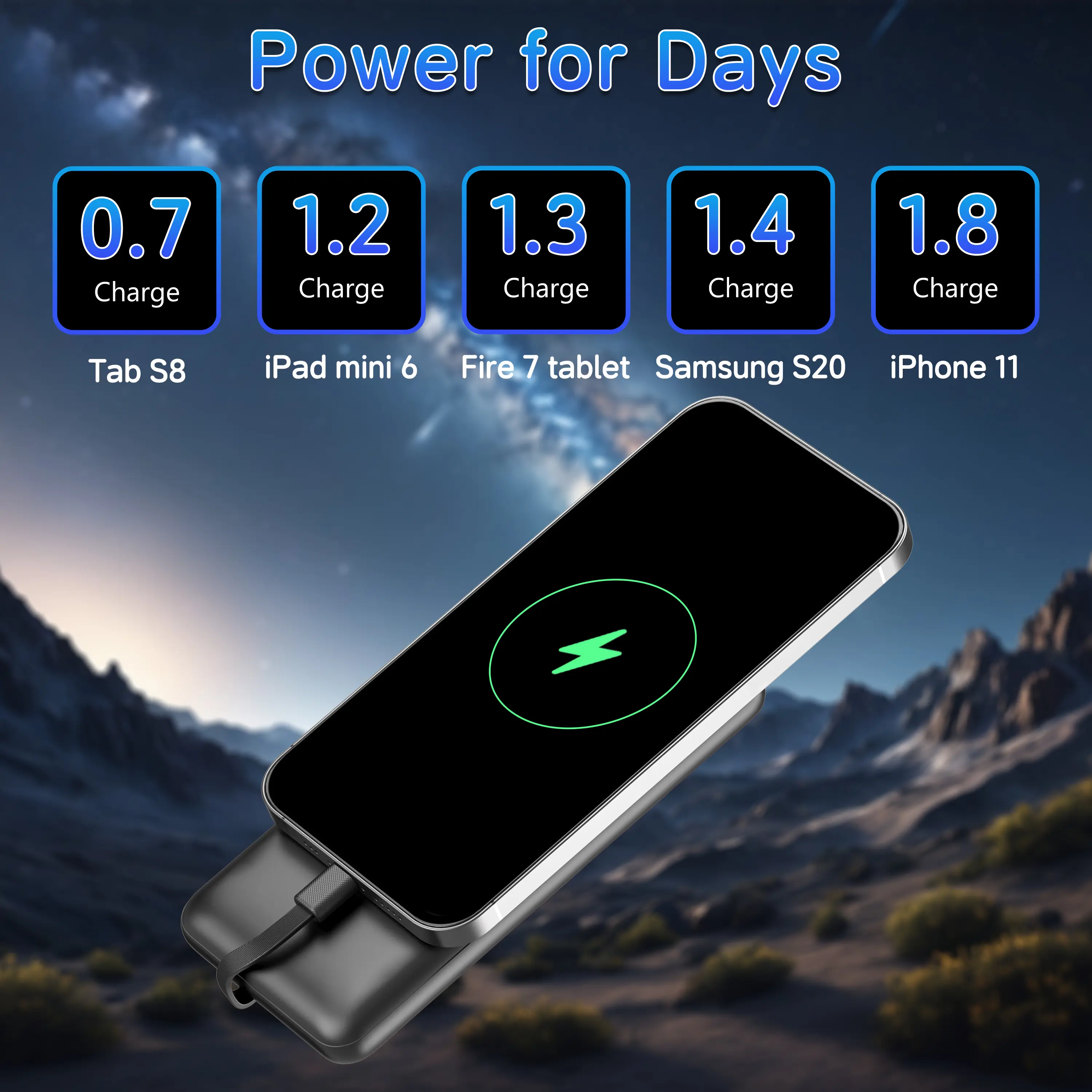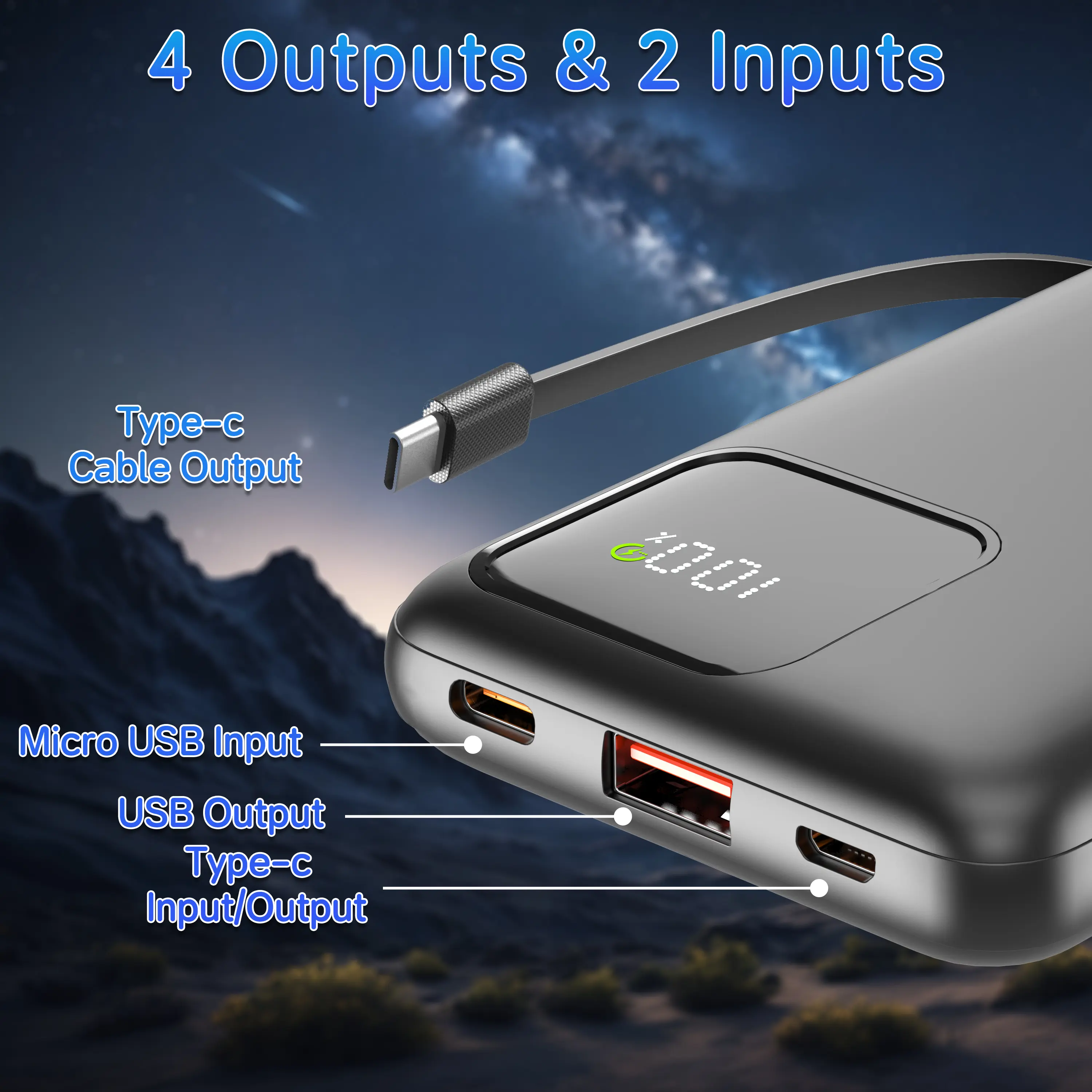 1× 10000mAh Power Bank (with Built-in Cables)