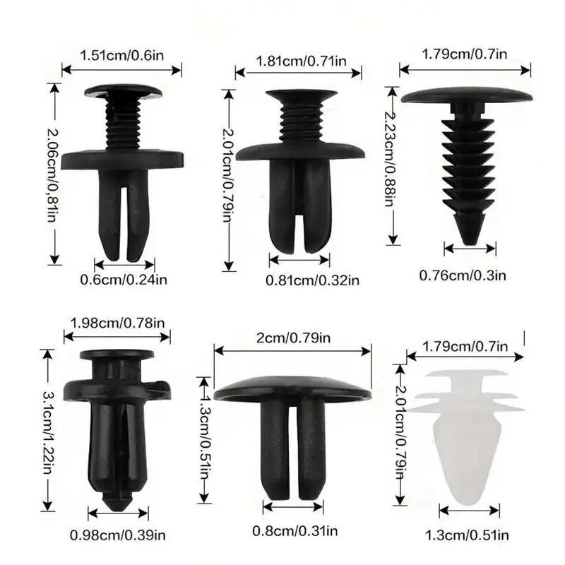 The kit comes in a clear box, making it easy to organize and access the clips. The box also includes measurement guides for precise fitting.
