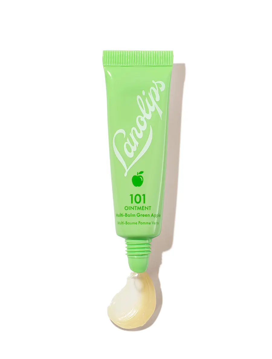 Meet your everyday multi-purpose balm for lips, skin, and dry areas. 101 Ointment Multi-Purpose Balm Green Apple is a rich, 100% natural balm designed to deeply hydrate and protect dry lips and skin. Made with ultra-pure lanolin, vitamin E, and real apple fruit extract, this nourishing ointment mimics the skin’s natural oils to lock in moisture and keep skin feeling soft, smooth, and comfortable. This clean, cruelty-free formula delivers long-lasting hydration and a smooth, protective feel without heaviness. The balm warms easily between fingers, melts into the skin, and helps seal in moisture making it ideal for lips, dry patches, cuticles, elbows, and other areas that need extra care. Infused with a crisp green apple flavor, this multi-use balm offers a refreshing sensory experience while providing dependable hydration wherever you need it. Compact and versatile, it’s perfect for everyday use at home or on the go. 10 g / 0.35 oz Net wt