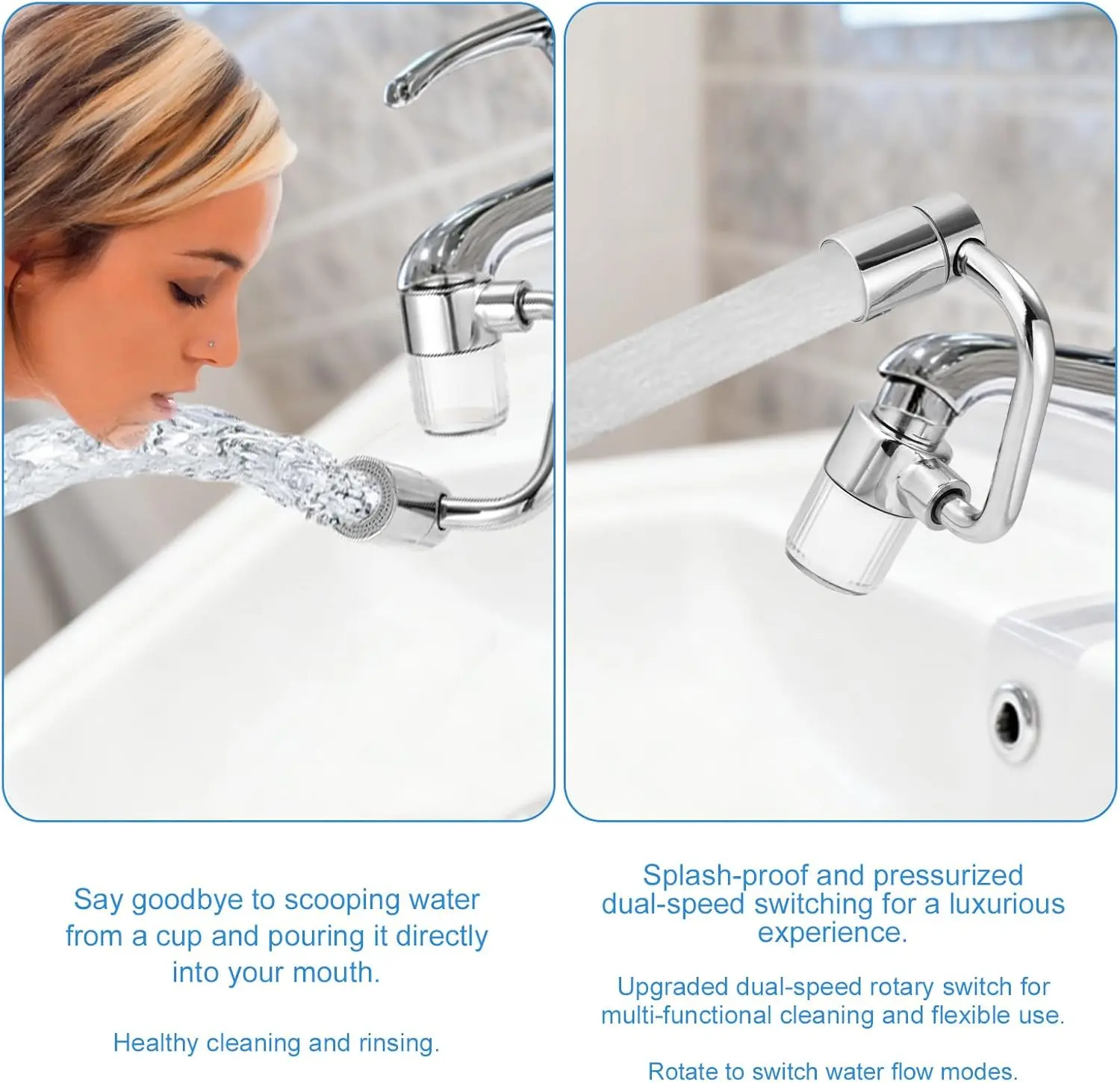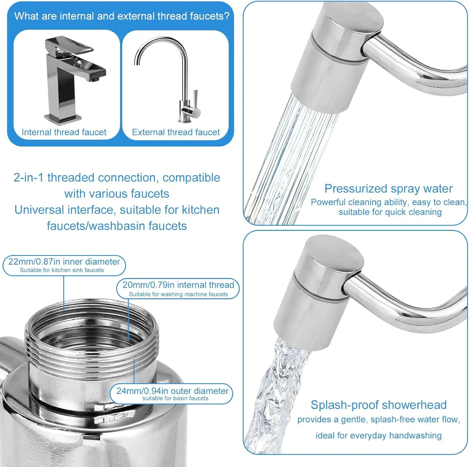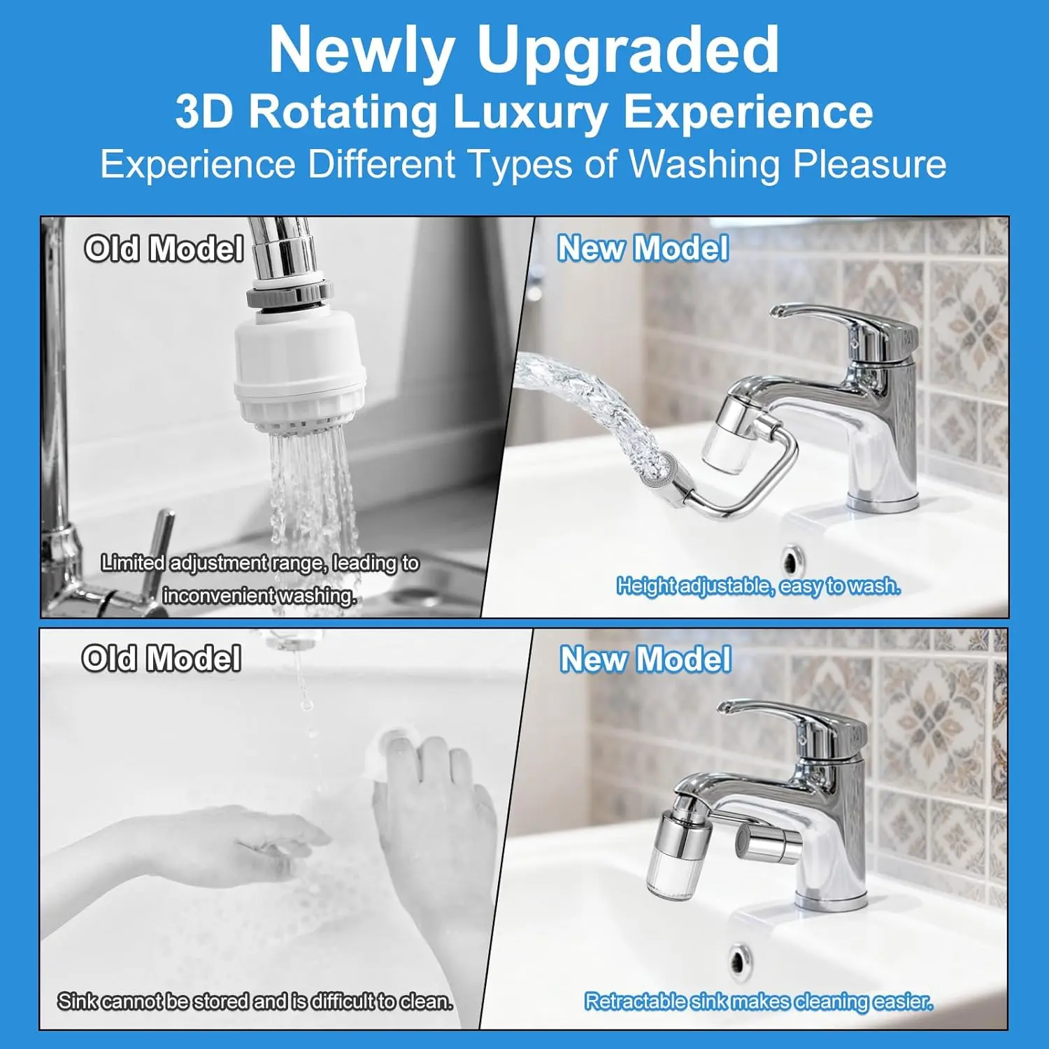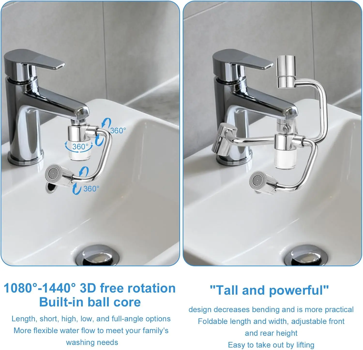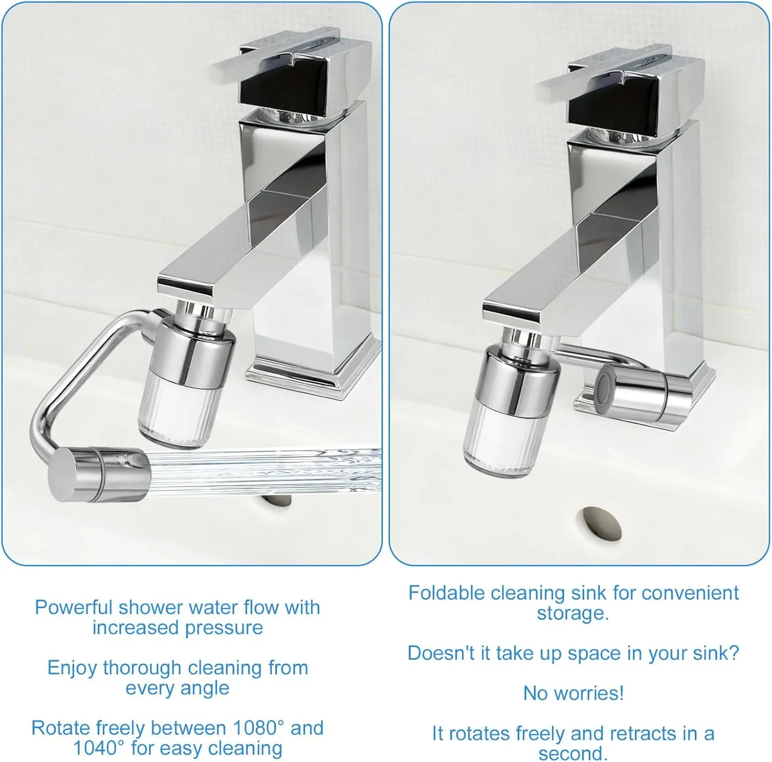 ·Full-Range Rotation: The rotatable faucet aerator extension allows for 1080°-1440° three-dimensional free rotation, giving you easy access to every corner of the sink. Clean your kitchen sink and maintain hygiene in your bathroom sink without moving items.