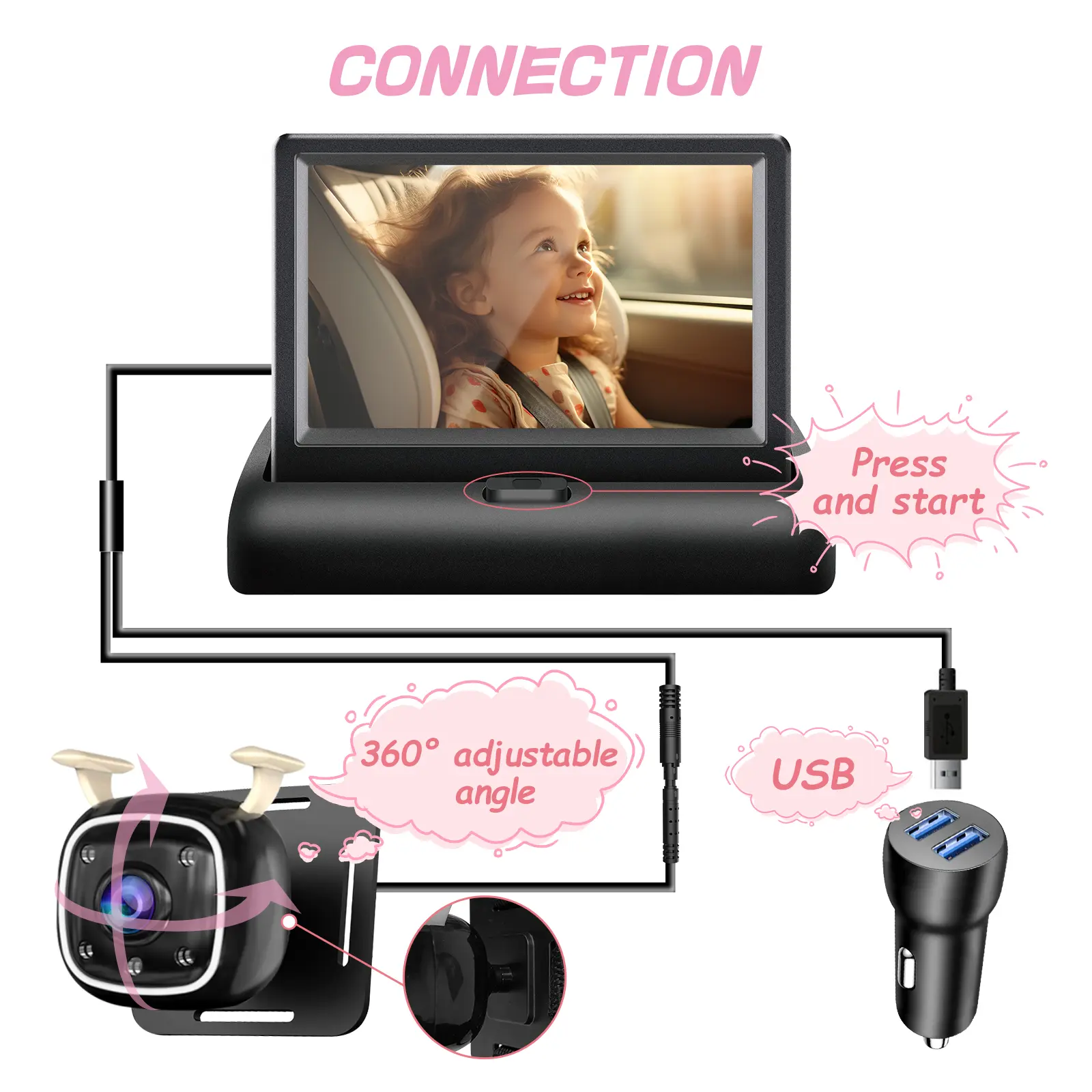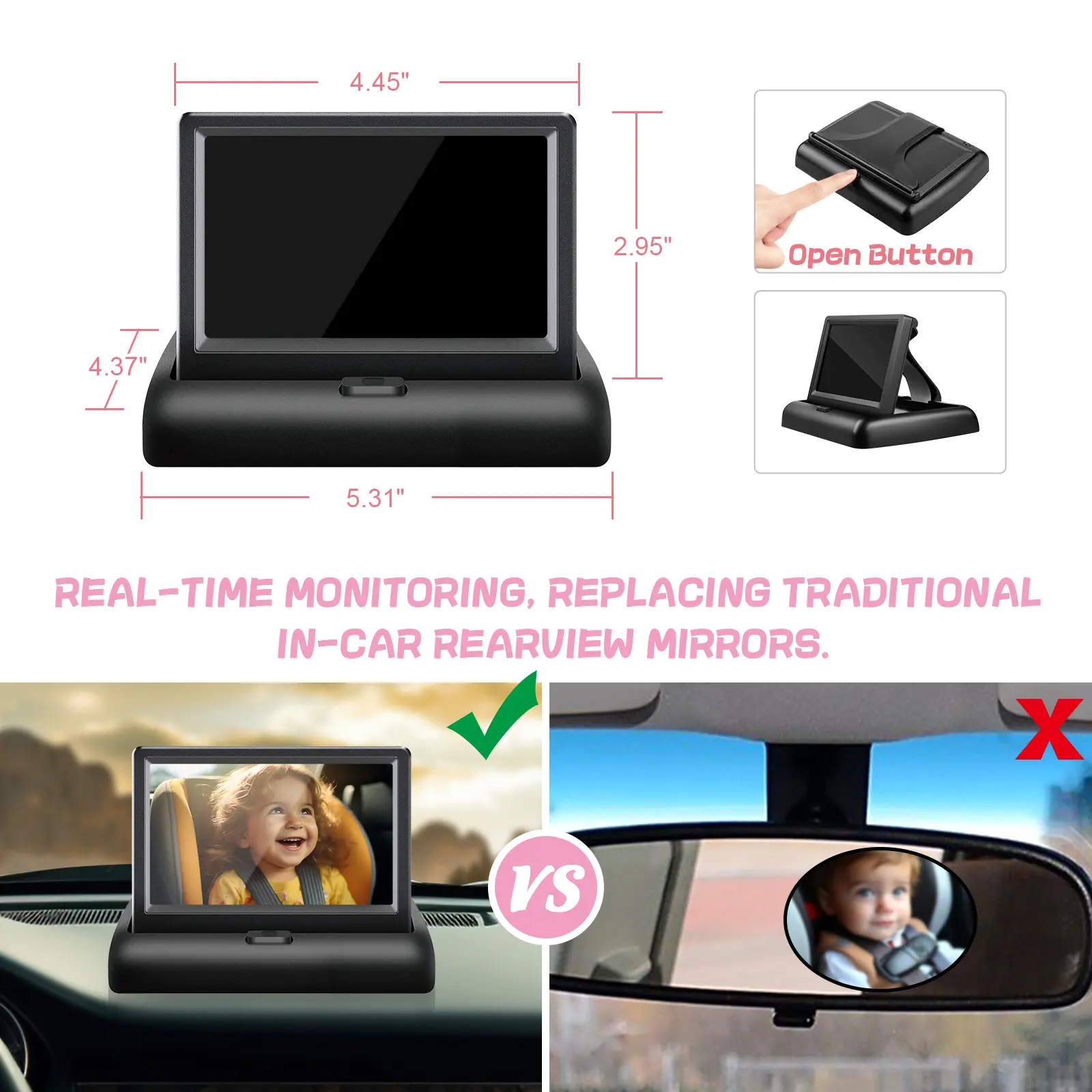 Equipped with a 4.3-inch HD display and AHD 1080P camera, this camera ensures smooth visuals and clear details, so you can safely focus on the road while keeping an eye on your little one without constantly turning around.