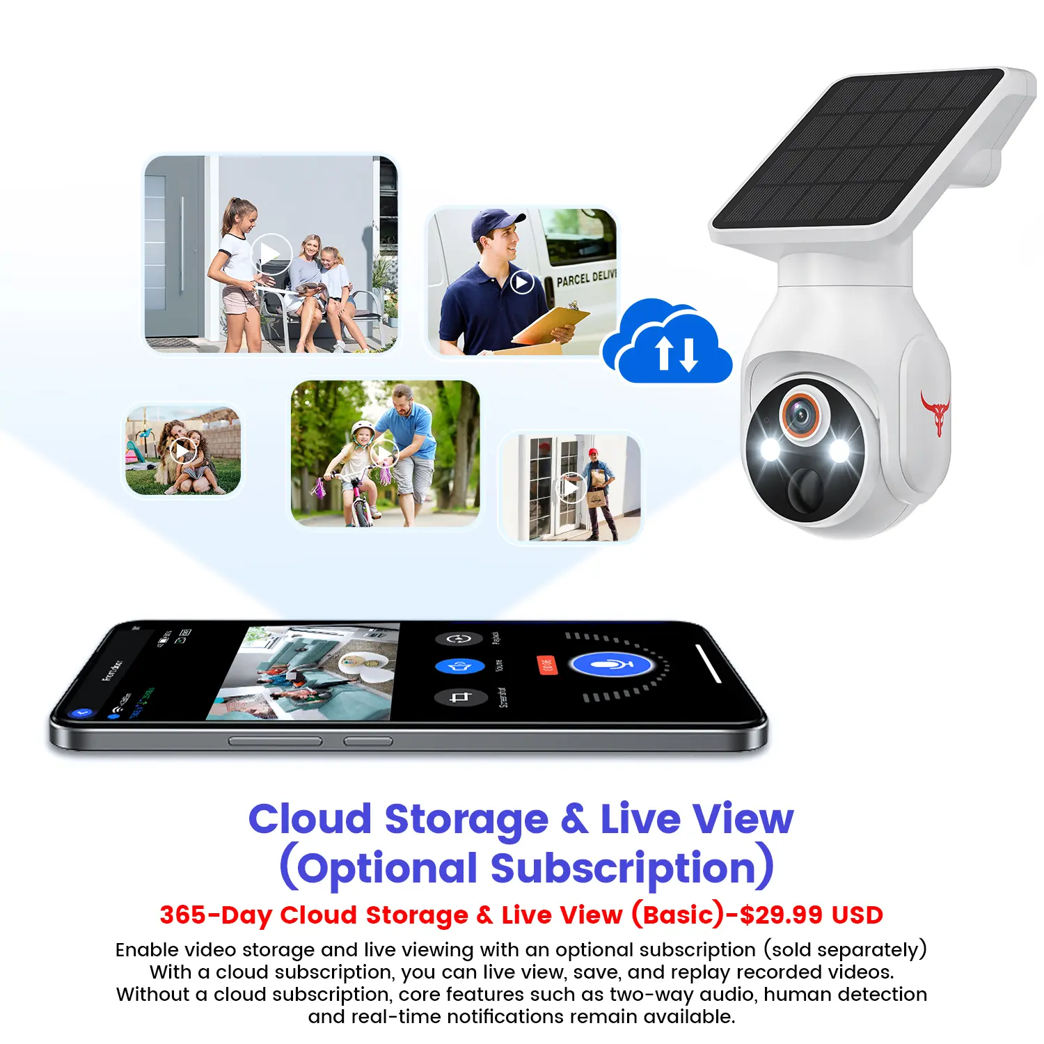 Thanks to AI-powered human detection, you’ll only get alerts when someone’s actually there, avoiding annoying false alarms from pets or passing cars. Plus, the two-way talk feature lets you chat with visitors or loved ones right from your phone, no matter where you are. Built tough with an IP65 rating, this camera stands strong against rain, dust, and harsh weather.