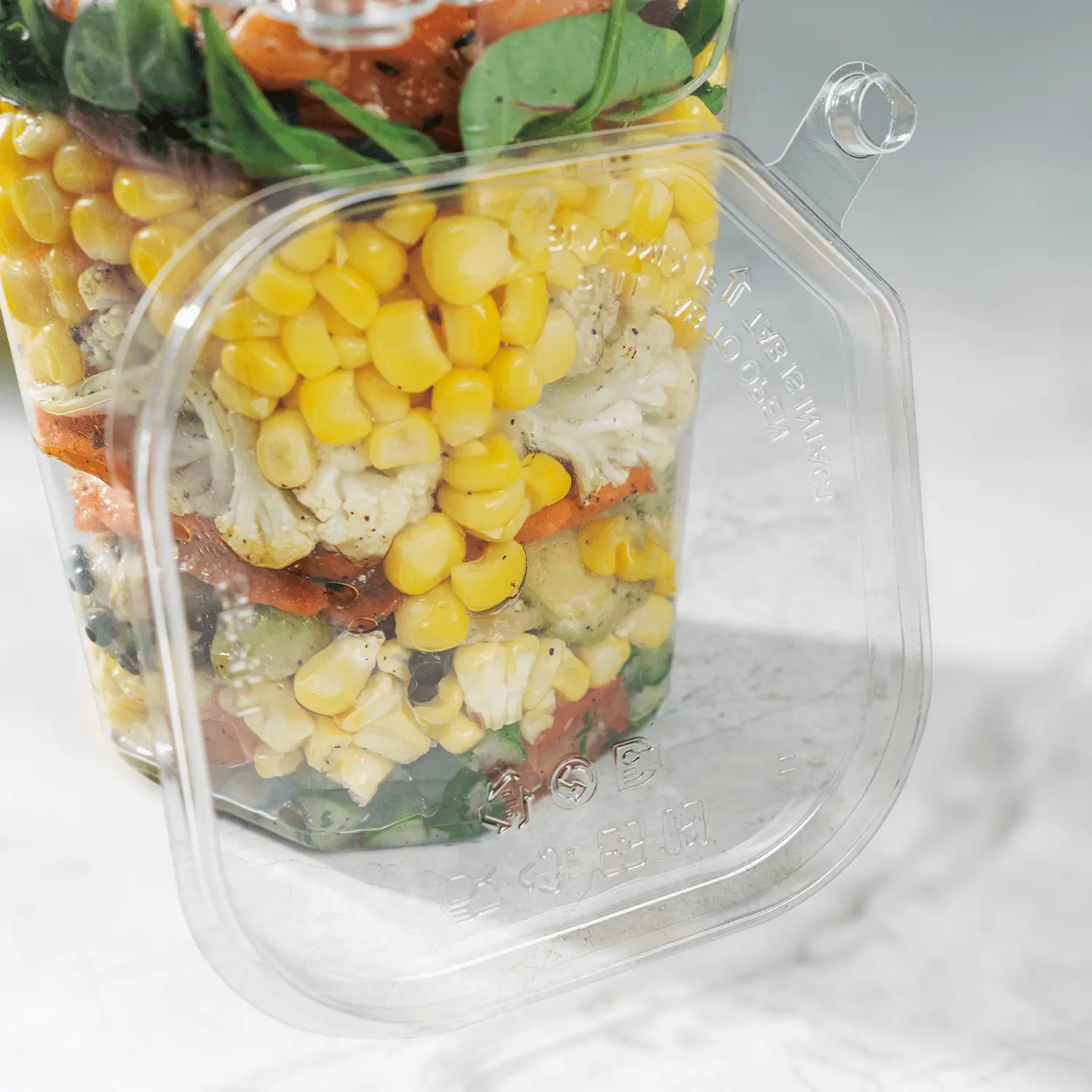 Designed with an integrated pull-tab lock, these lids provide a strong tamper-evident seal that helps protect contents from unauthorized opening—giving both operators and customers added confidence. A clear, polished appearance enhances product visibility, making it ideal for showcasing chilled foods, pastries, snacks, and grab-and-go items.