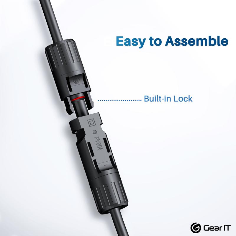 ·BUILT-IN LOCK SOLAR CONNECTORS - The built-in lock on the solar extension cables are designed to protect water and dust from entering the cables and to prevent cables from falling out due to outdoor environments.