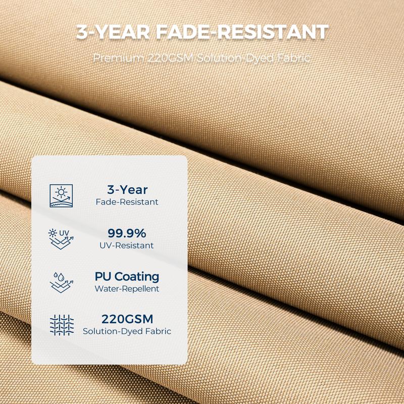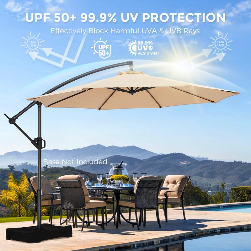 ·【Premium Canopy & Easy Crank】: High-quality 10ft 220gsm solution-dyed fabric with UPF90+ anti-UV coating provides 5-year fade-resistant, 99.9% UV-resistant, and water-repellant properties.Effectively blocks harmful UV rays including UVA and UVB to protect your health.No more risk of sunburn.Smooth crank system ensures that opening (clockwise) and closing (counterclockwise) the offset umbrella can be easily accomplished in seconds.